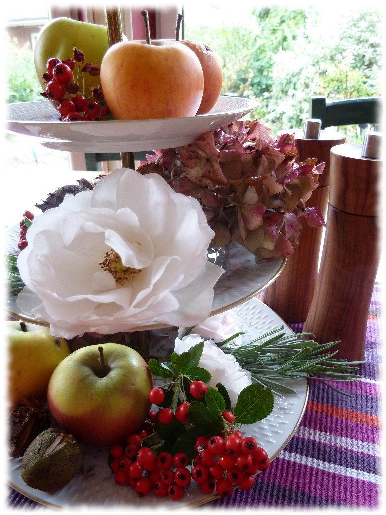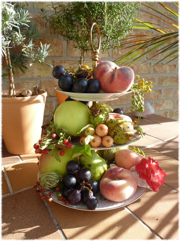 Meine Etagere habe ich bei einer Versteigerung auf einem Campingplatz für wenig Geld bekommen. Ich mag sie besonders im Herbst und dekoriere sie ganz oft immer wieder neu.