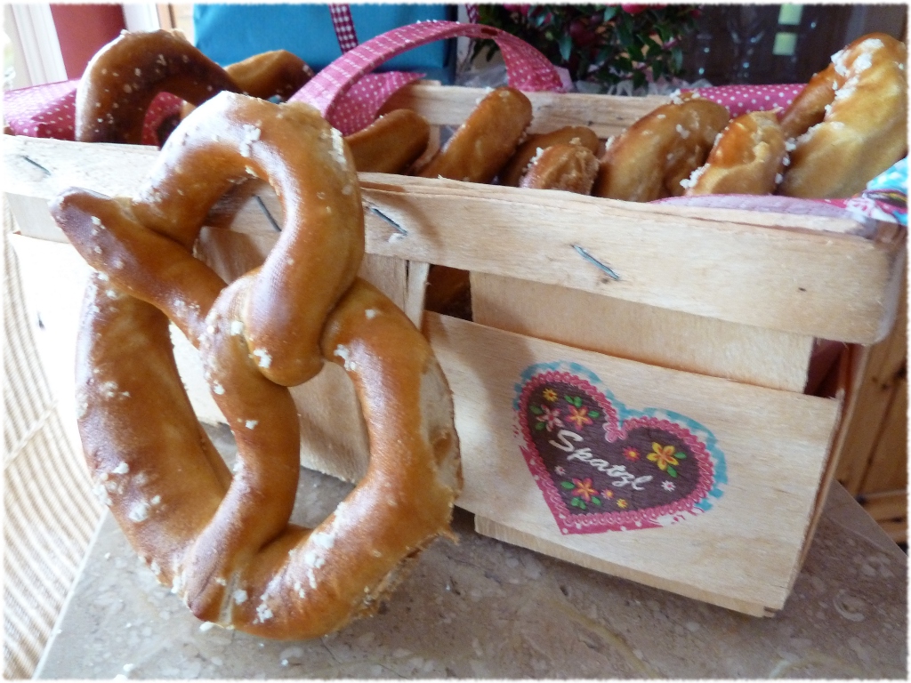 Mein Schwesterherz hatte Geburtstag und hat uns zum Oktoberfest eingeladen. Kurzerhand bekam ihr Geschenk eine zünftige Verpackung im Oktoberfest-Look. Brezeln im Spankorb gab es auch gleich dazu.