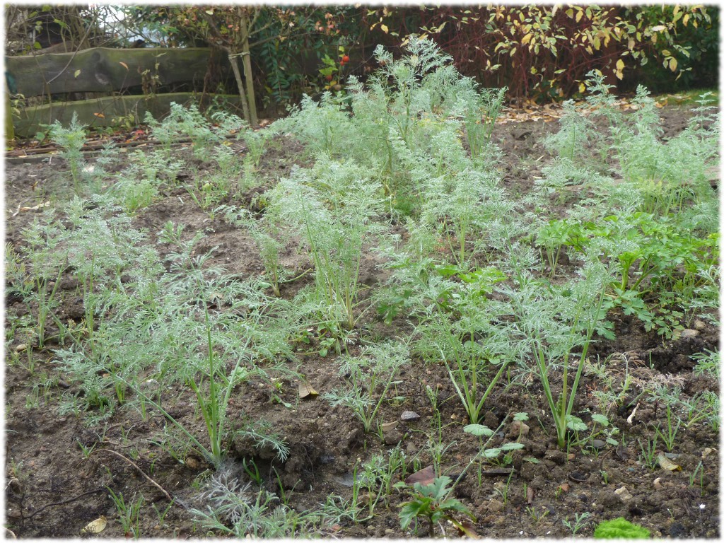 Der Dill macht dieses Jahr, was er will. Im Sommer ausgesät, dümpelte er so vor sich hin. Ich hatte hier und da mal einen Stengel zum Kochen. Mehr nicht. Habe die paar Stengel stehen gelassen wie jedes Jahr, weil ich die Blütendolden für fluffige Blumensträuße so mag. Ein Glück, so konnte er sich wieder aussäen und was soll ich sagen? Der schönste Dill wächst auf unseren „Ländereien“. Hätte ich versucht, welchen ordentlich in Reih und Glied auszusäen, wette ich, dass es nicht gelungen wäre. Ja, manchmal hilft es, einfach loszulassen. :-)