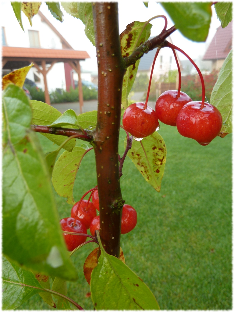 Dieses Jahr hat unser Zierapfel die ersten Früchte. Ich bin sowas von begeistert von diesen kleinen roten Äpfelchen. Damit übersteht man jeden trüben Novembertag, auch wenn wir bis jetzt mit goldenen Herbsttagen verwöhnt wurden. Mach weiter so, Herbst!