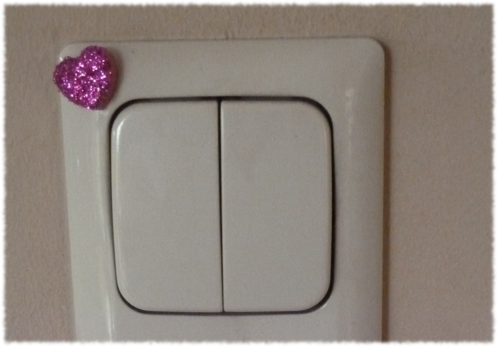 Scrapbooking muss ja nicht auf dem Paier enden, oder? Der Lichtschalter bekam auch gleich noch ein Herzchen verpasst.