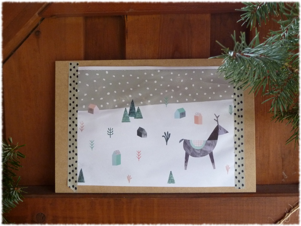 In der Flow (http://www.flow-magazin.de/) fand ich ein paar wunderschöne Postkarten, die ich hochkopiert habe und auf A4 Brettchen erst mit Sprühkleber und dann mit Masking Tape geklebt habe.