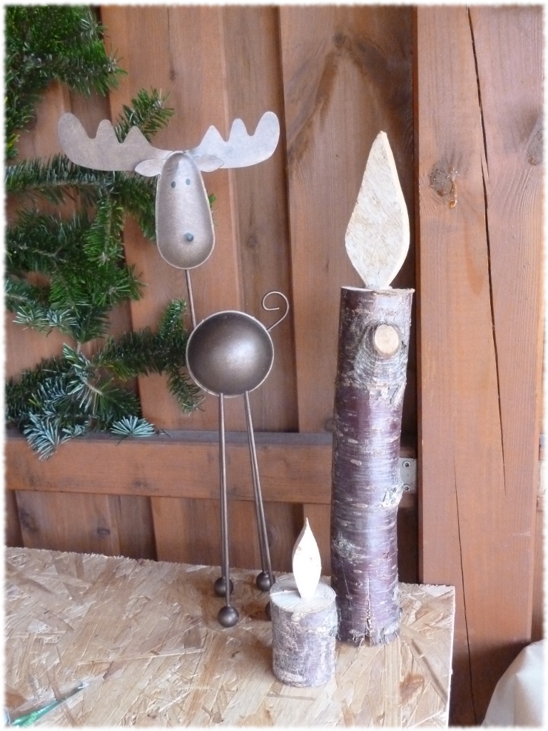 Die Holzkerzen hole ich jedes Jahr raus. Mit einer Flamme aus OSB sehen sie richtig rustikal aus. P1020651