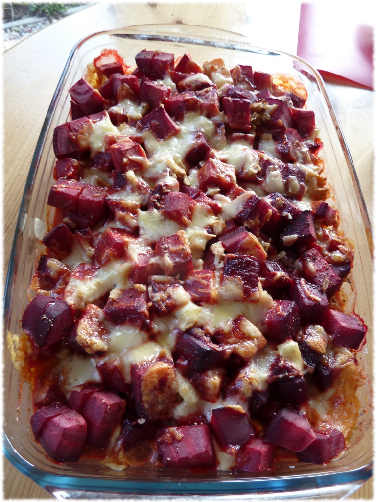 Mit Beginn des neuen Jahres habe ich große Lust etwas Neues – gern vegetarisch – in der Küche auszuprobieren. Ich hatte mal ein Gratin in einer Zeitschrift gesehen, dass Süßkartoffel und rote Bete enthielt. So etwas wollte ich ausprobieren. Ich fand bei Chefkoch, dass ich gut fand und mit ein bisschen Abwandlung nachkochte.