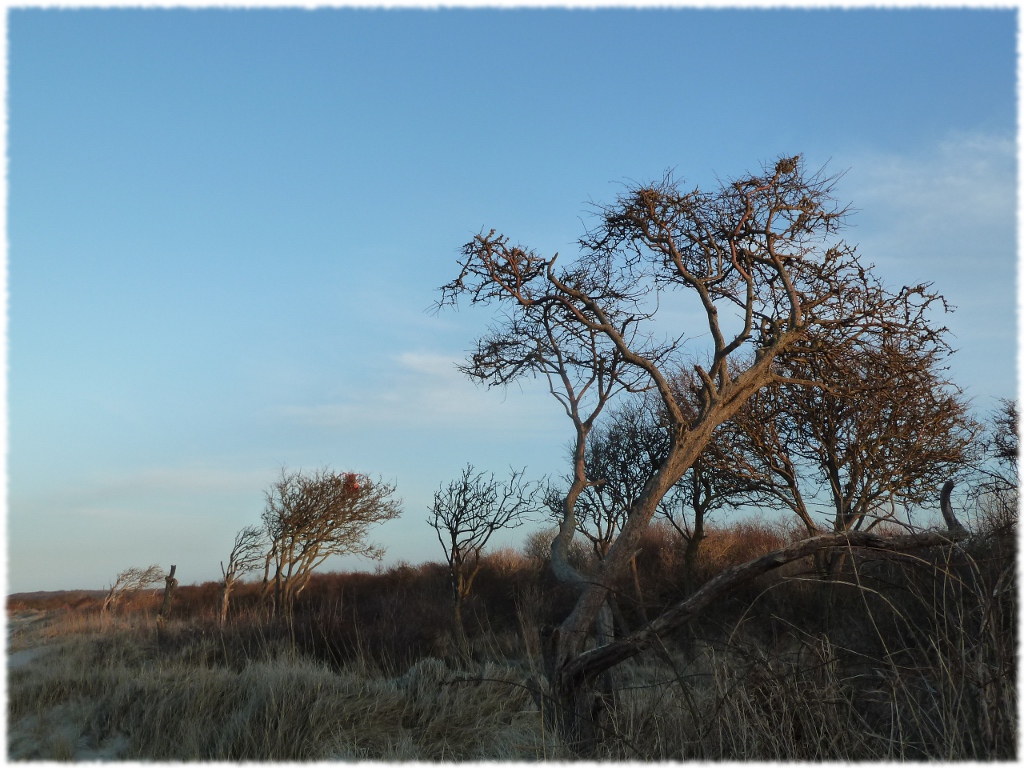 Kahle Windflüchter im Abendrot erinnern an Bäume in der Savanne.