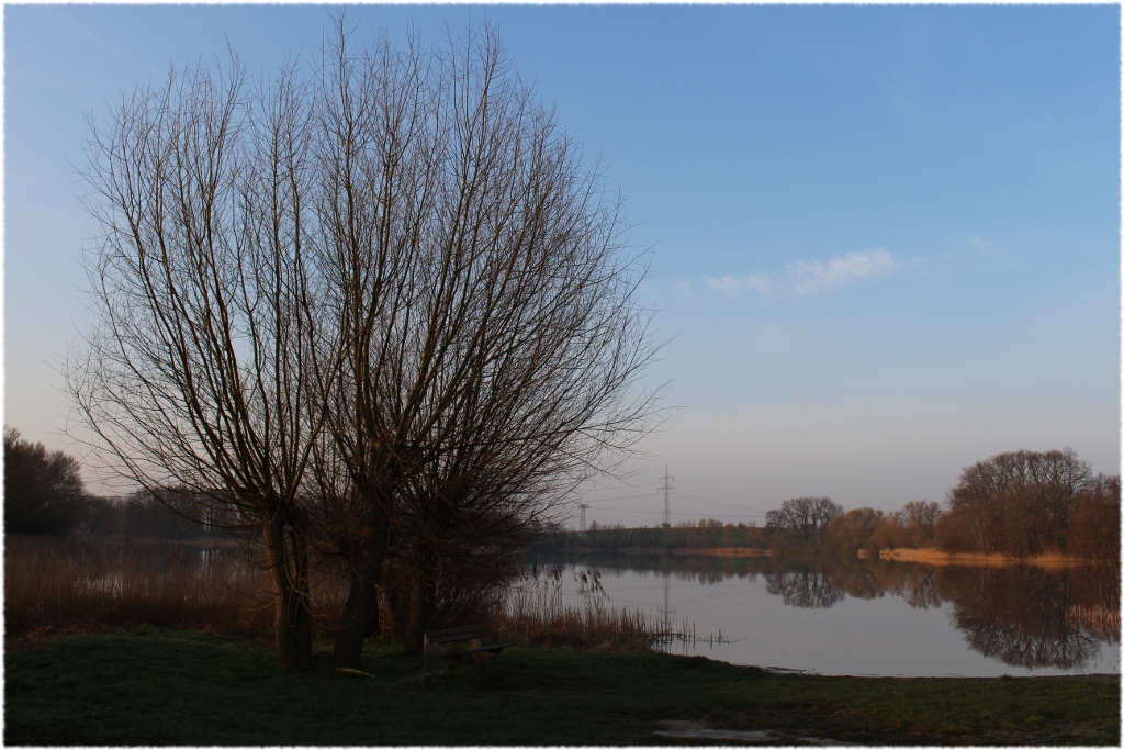 Es war heute morgen so schön, dass ich gleich nach dem Aufwachen aufgestanden bin, die Turnschuhe angezogen habe und mit der Kamera meine Walkingrunde gedreht habe. Obwohl ich schon so oft da lang gegangen bin, fasziniert mich immer wieder diese friedliche Morgenstimmung rund um den See.