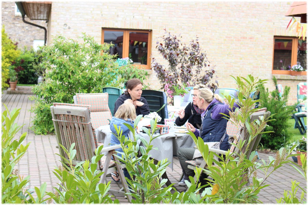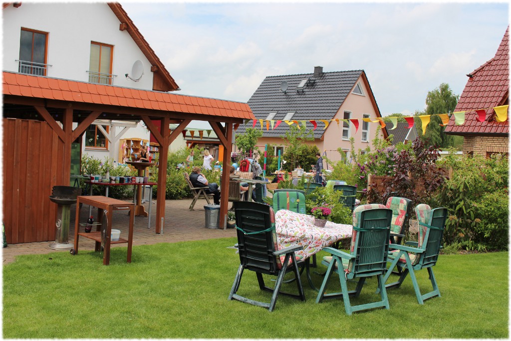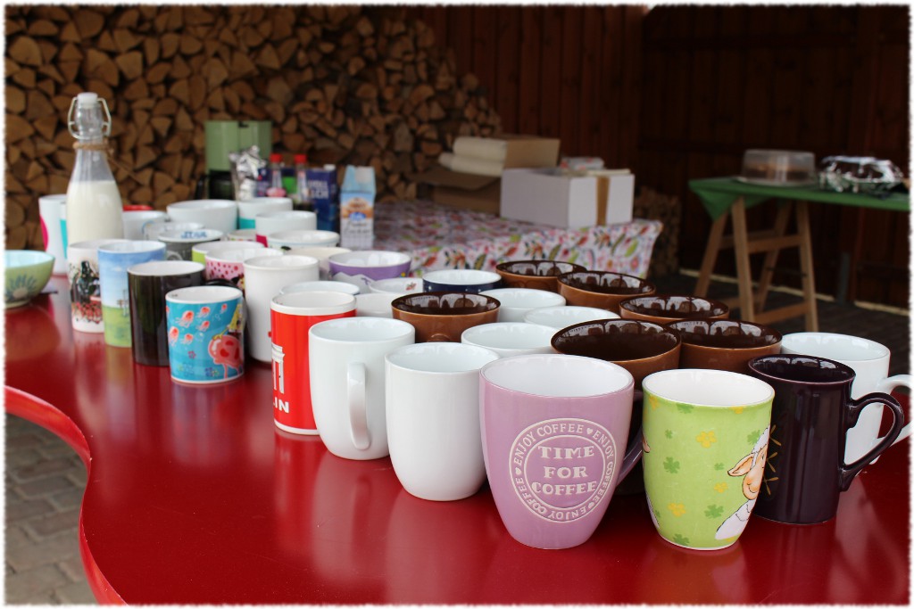 Der Garten und unser Carport wurde in ein kleines Café umgewandelt, Kaffeepötte aus den Küchenschränken geräumt…