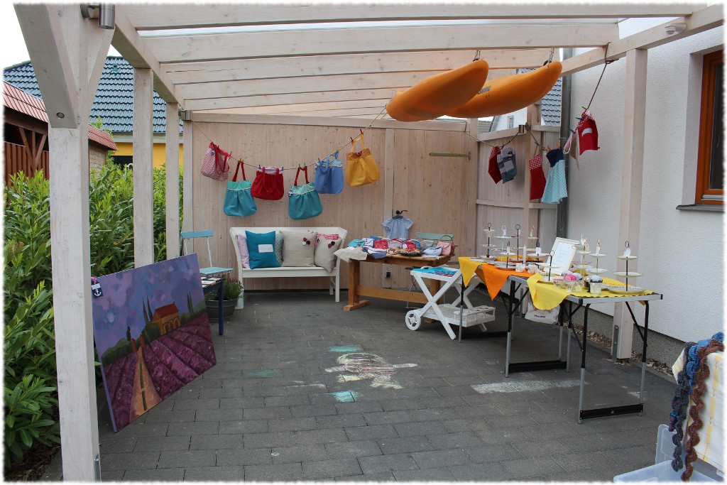 …selbst Regale wurden nach draußen getragen und dienten zum Stöbern in unserer Bücherecke. Der helle freundliche Carport unserer Nachbarn war einfach perfekt für unseren Kreativmarkt. Schaut einfach selbst: