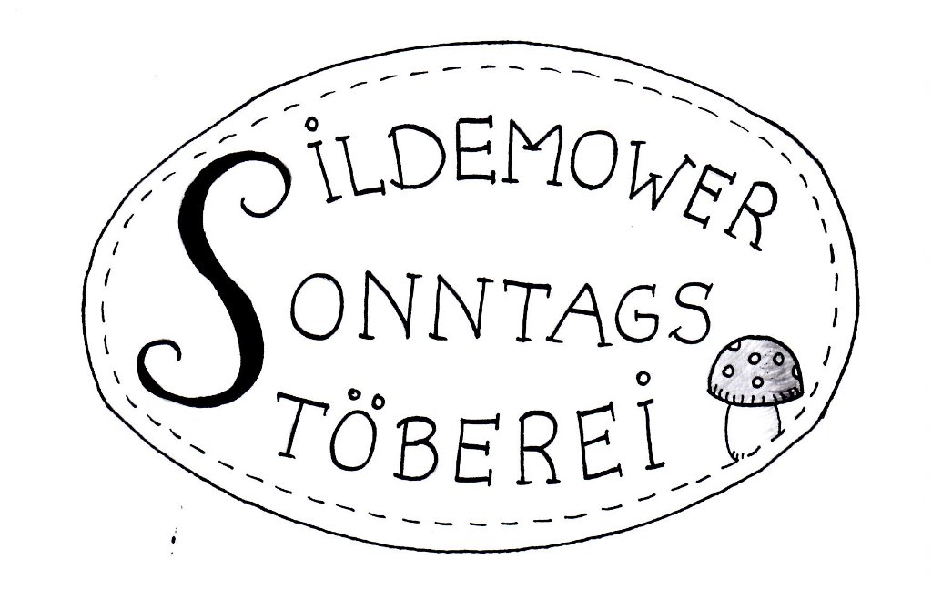 Aber von vorn: Bei einem gemütlichen Kaffeeplausch unter Nachbarinnen war die Idee geboren, eine Art Garagenverkauf auf unserer Stichstrasse zu organisieren. Einerseits wollten wir mit dem Inhalt unserer Dachböden eine Flohmarktstrecke aufbauen und andererseits mit unseren selbstgemachten Unikaten einen kleinen Kreativmarkt veranstalten. Für das leibliche Wohl sollte Kaffee und Kuchen dienen, auch eine Bratwurst sollte angeboten werden. Gesagt, getan! Unter dem Arbeitsnamen „Sildemower Sonntagsstöberei“ begann dann die Arbeit. Hier unser Logo, dass auf jeden Fall handschriftlich sein sollte. Was für ein Glück, dass mein Töchterchen so gut schreiben und zeichnen kann. Sie setzte sich eines Sonntags hin und malte das Logo. Wir waren richtig happy damit.