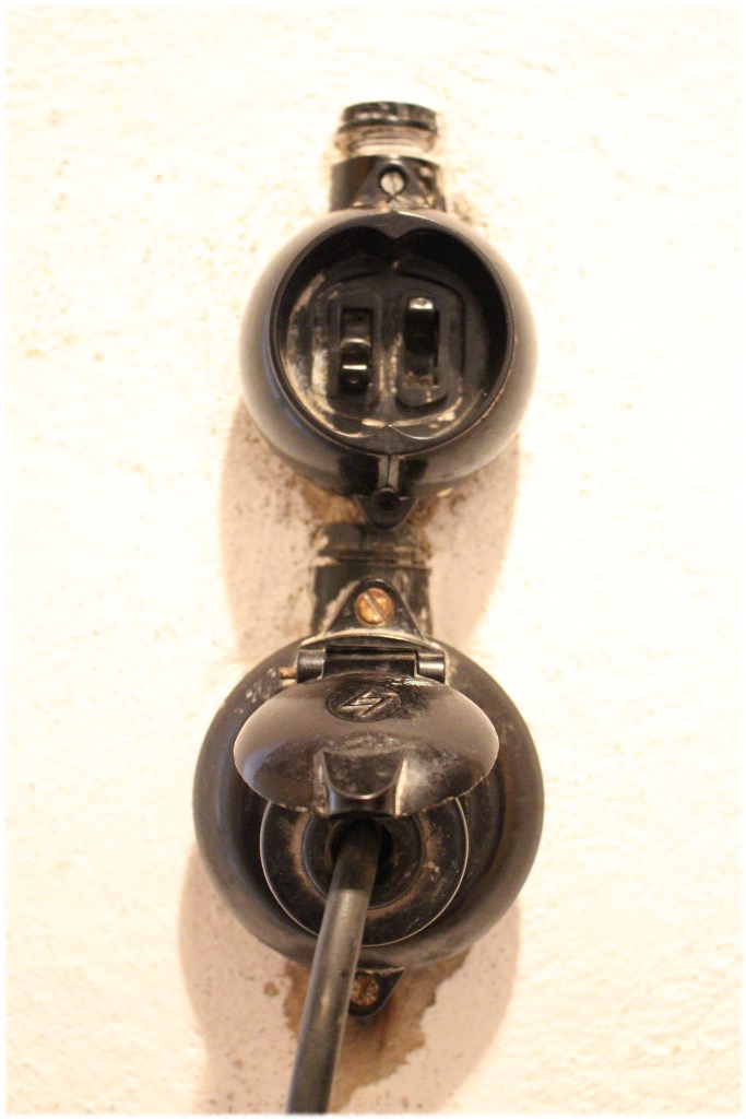 Wir trieben es mit unseren Herdplatten soweit, dass die Sicherung raussprang. Trotzdem konnte ich mich dem Charme dieser alten Steckdosen und Schalter nicht entziehen. Echt Vintage, oder?