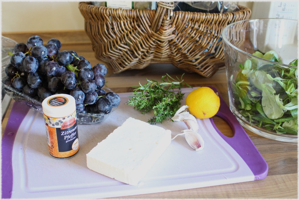 Ich mag diese Kombination aus der Süße der Weintrauben, der Frische der Zitrone und den mediterranen Kräutern plus Knoblauch gepaart mit herzhaftem Schafskäse und Salat. Guten Appetit und let’s have a party! IMG_2840