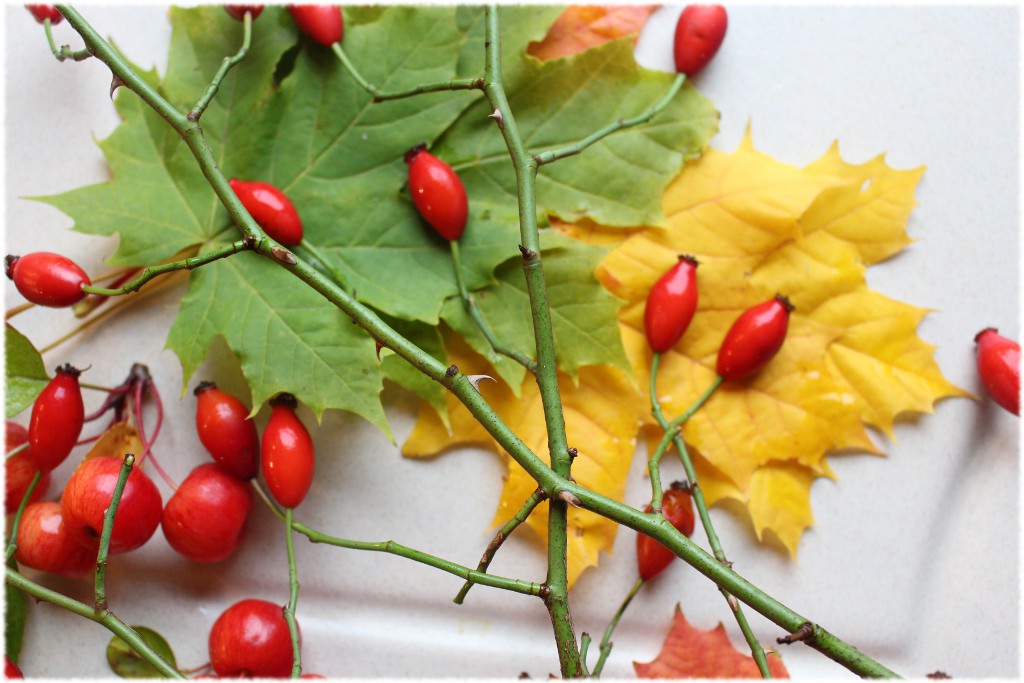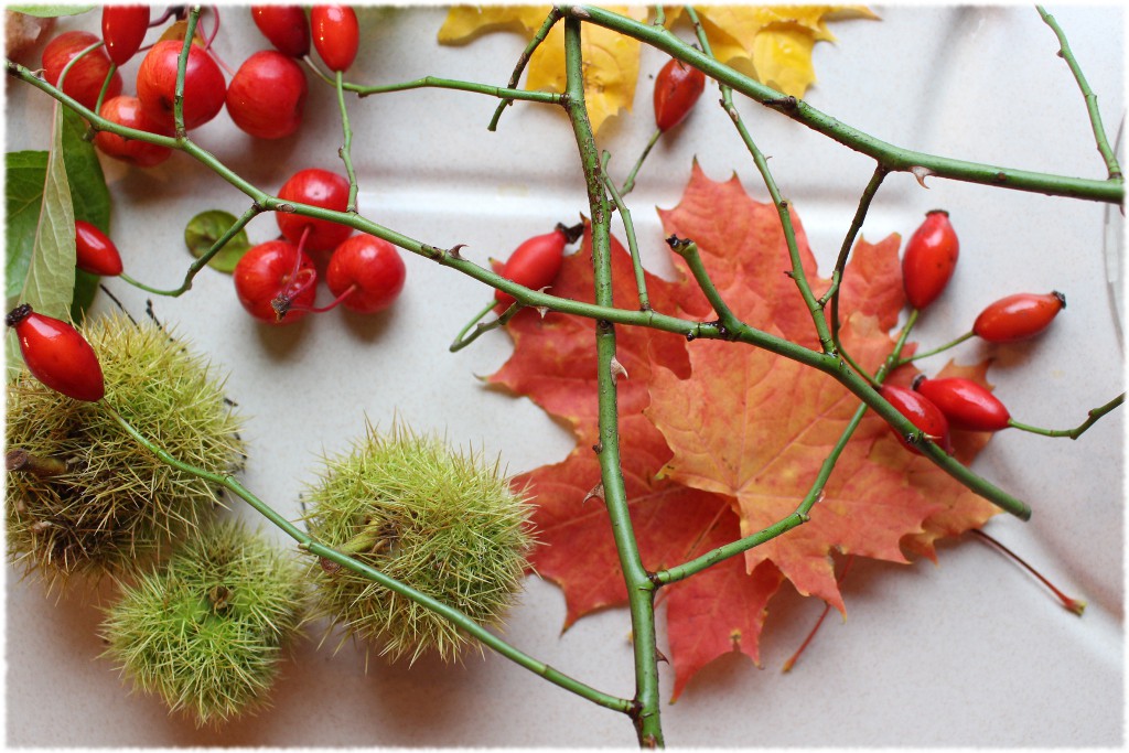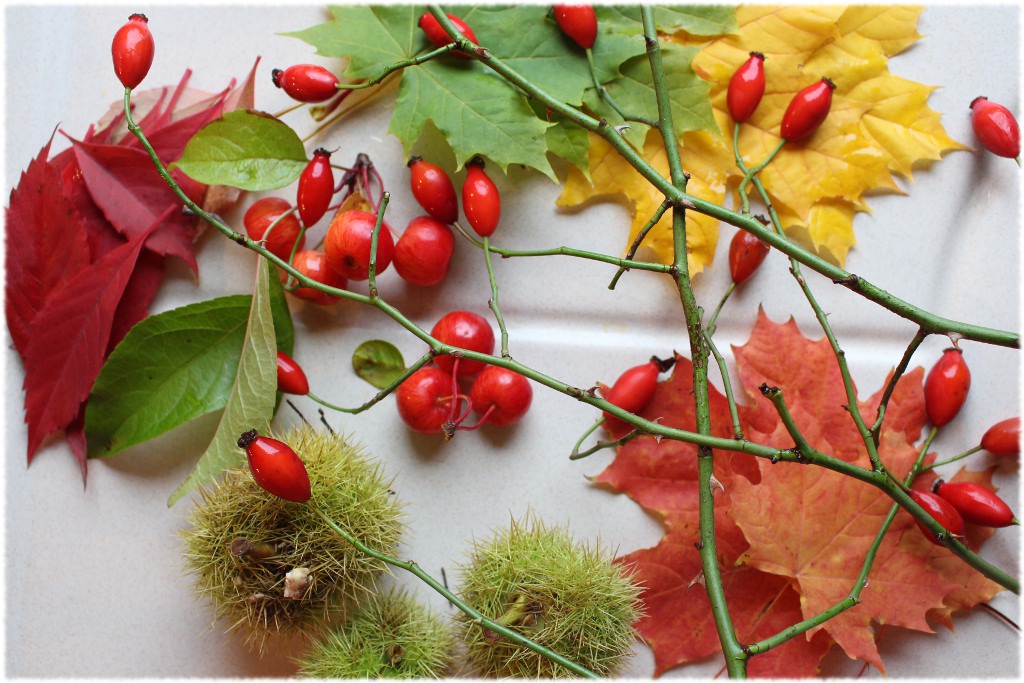 Ein Spaziergang und schon hat man ein solches farbenfrohe Ensemble gesammelt. Das sind die schönen Seiten des Herbstes. Was schert uns da Dunkelheit, Nebel und Kälte.