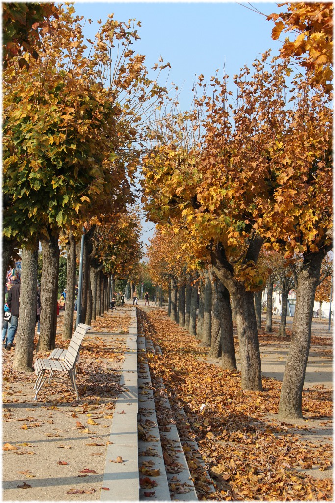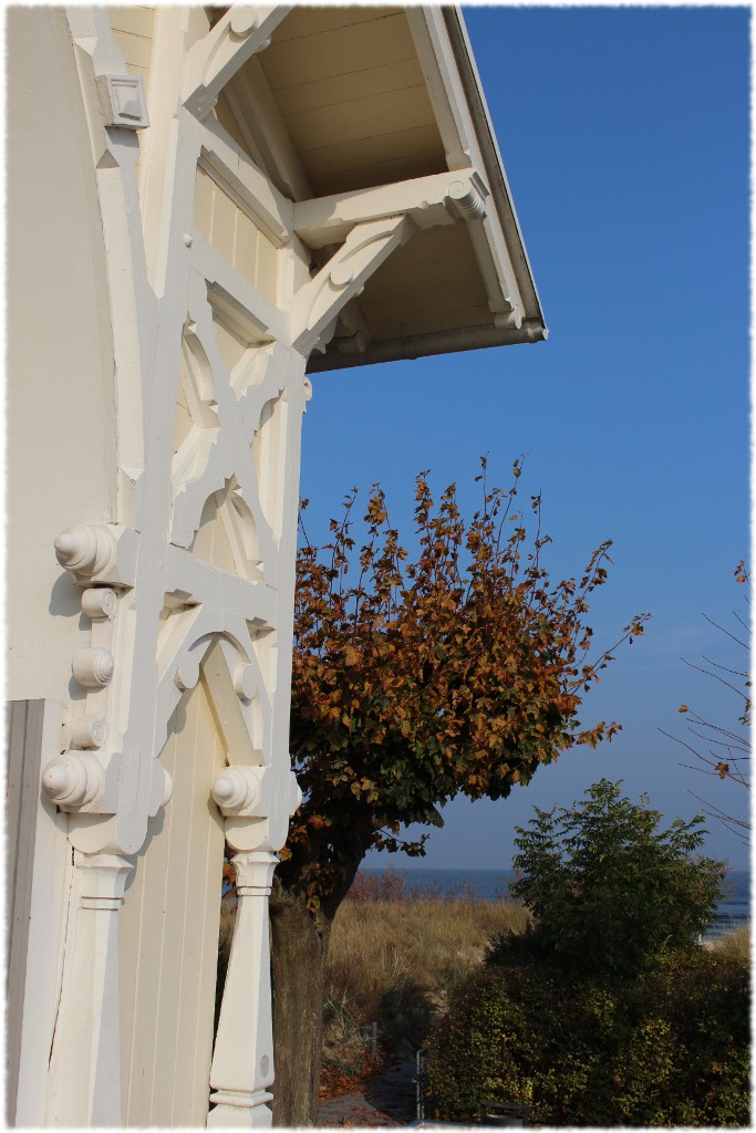Die Ahlbecker Seebrücke ist ein Muss für jeden Usedombesucher. So tapperten wir mit anderen Besuchern bis zum Ende hin und genossen danach die Herbstidylle auf dem Kurplatz davor hindurch durch raschelndes Laub.