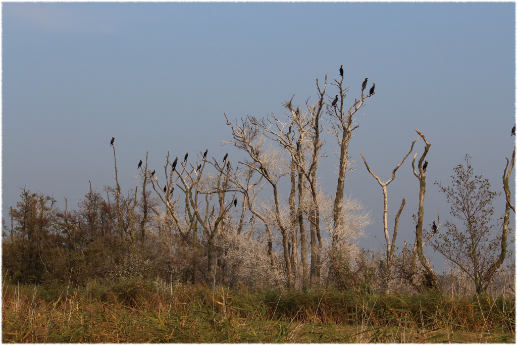 Kormorane am Schmollensee und nein, es war kein Raureif auf den Bäumen :-) .