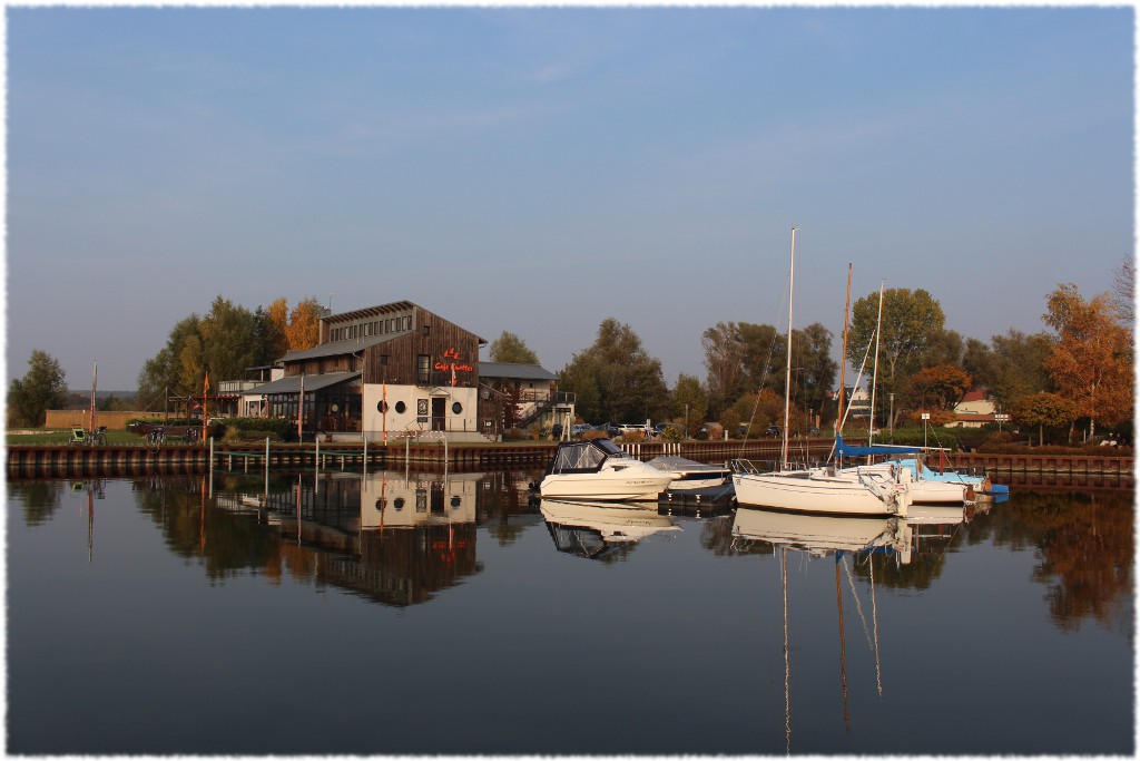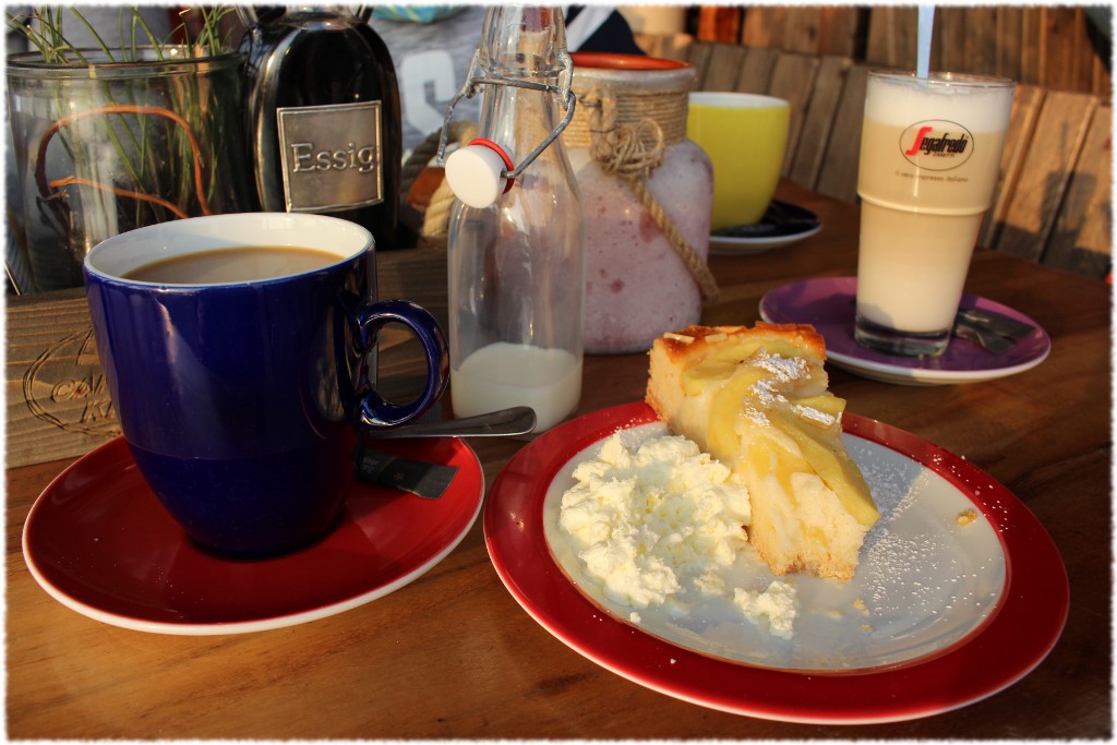 Café Knatter in Ückeritz ist eigentlich Restaurant, Pension und Café. Wenn ich eine Hafenkneipe betreiben würde, sehe die genau so aus. Die rustikale und trotzdem moderne Einrichtung machten Laune, dort länger zu verweilen. Wir probierten den Kuchen, der sehr empfehlenswert war. Aber die Fischplatte vom Nebentisch sah auch super aus!