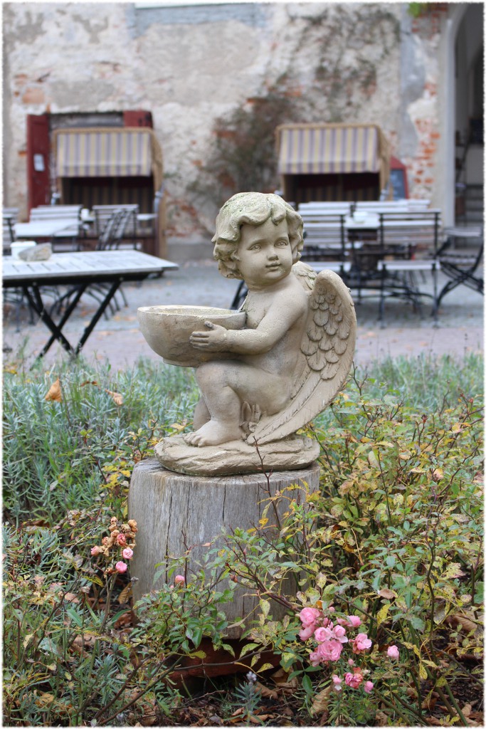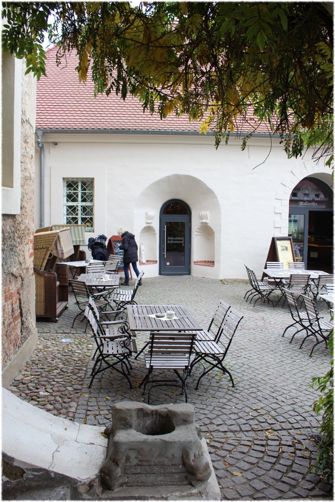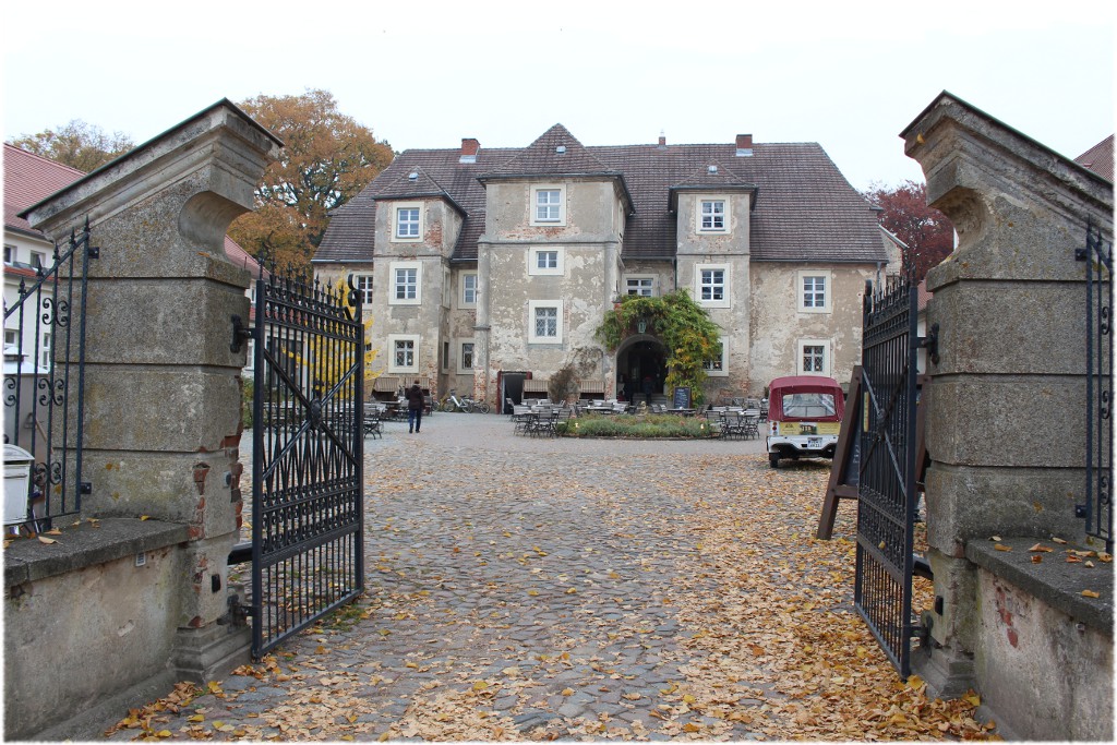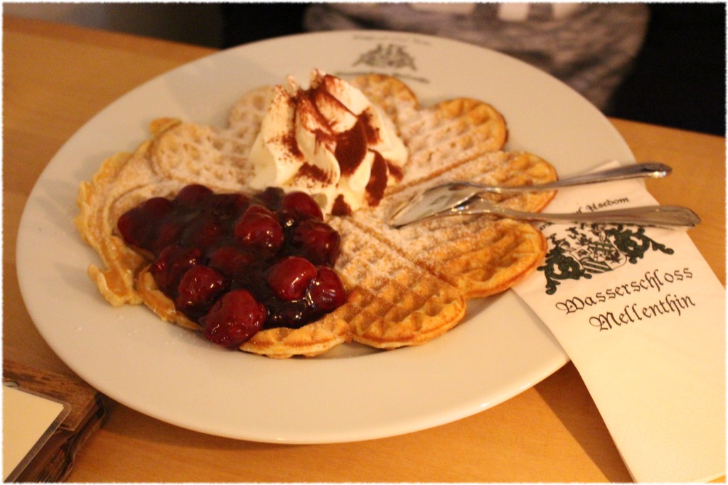 Das Wasserschloß in Mellenthin liegt im Herzen von Usedom und war ein wunderbares Ausflugsziel. Der Brückenzoll war gut angelegt, zumal die Knappen und Mägde (alle unter 18 Jahre) nichts bezahlen brauchten und wir unseren Zoll gleich als Wertgutscheine im Restaurant umsetzen konnten. Das Schloß war von innen sehr liebevoll renoviert und in vielen kleinen Räumen konnte man leckerste Speisen, Waffeln aus eigener Bäckerei und die besten Torten weit und breit genießen. Es fiel uns schwer mit so viel Sahnetorte im Bauch hinterher auf’s Rad zu steigen.