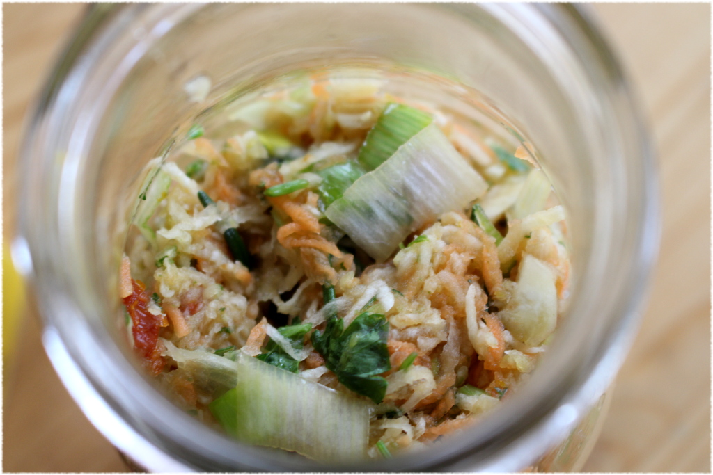 Nach einigen Recherchen, ob gedörrt oder eingesalzen, habe ich mich für eine abgewandelte, eingesalzene Variante von natürlich schmeckts  entschieden. Kennst du Zoricas Blog? Ich mag ihre Küche sehr. Ihre einfachen, geschmackvollen Rezepte sind genau mein Ding. Die Gemüsebrühe ist auch so eine feine Rezeptidee. Ich habe Sellerie, Porree, Pastinaken, Möhren, getrocknete Tomaten, Petersilie, ein bisschen Rosmarin und Thymian genommen.