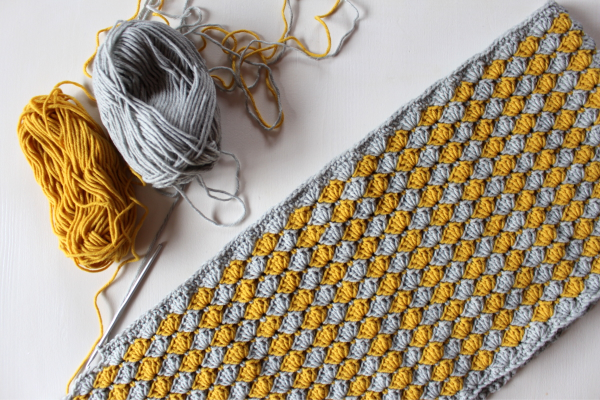Loop-im-Muschelmuster-gehäkelt-senfgelb-grau-Merinowolle04