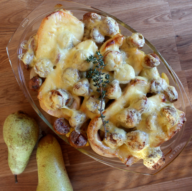 Kartoffel-Birnenauflauf mit grober Bratwurst06