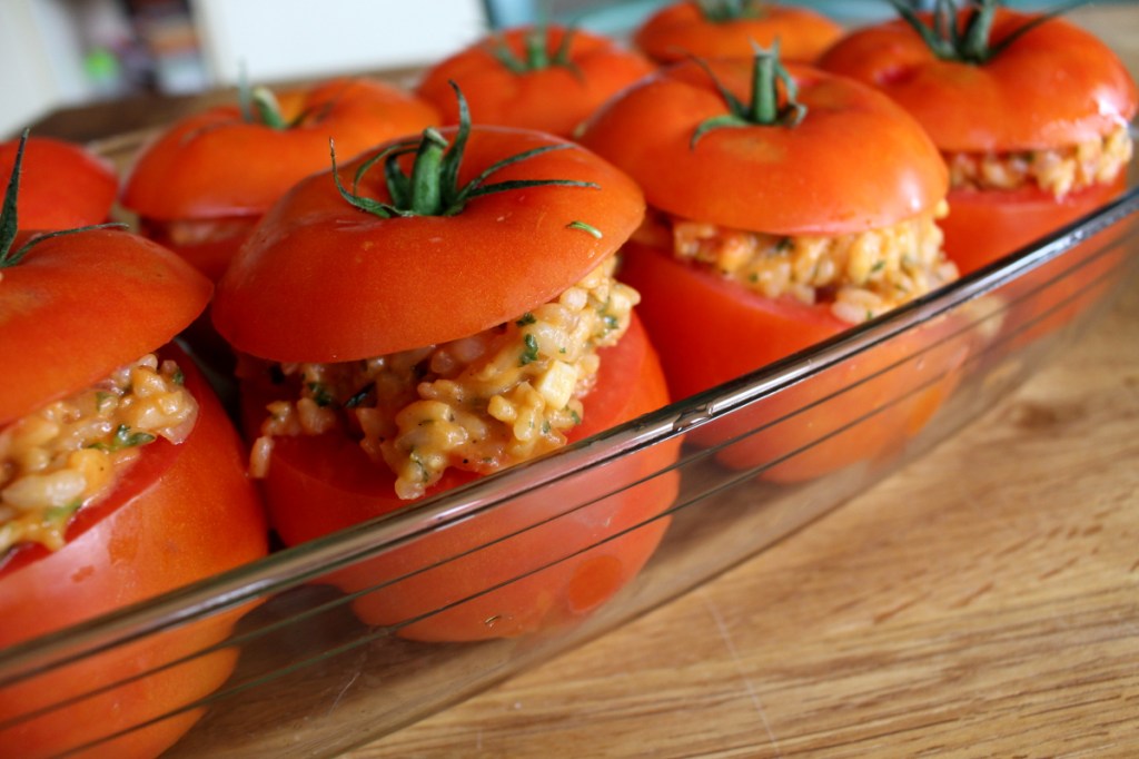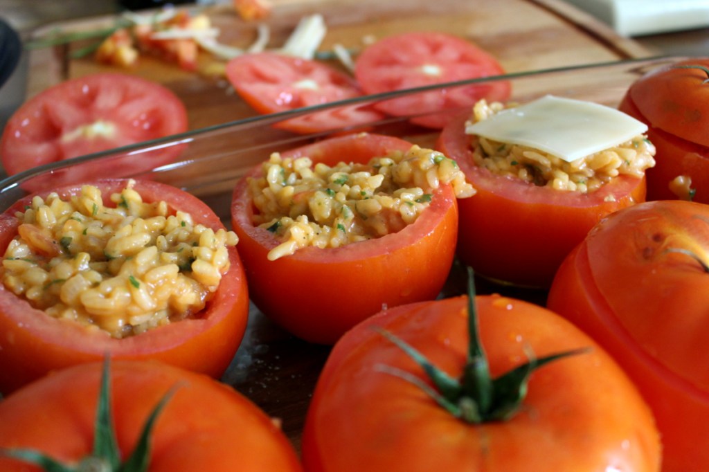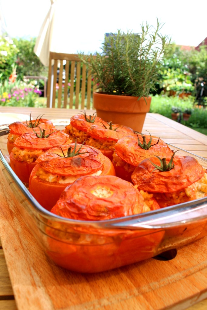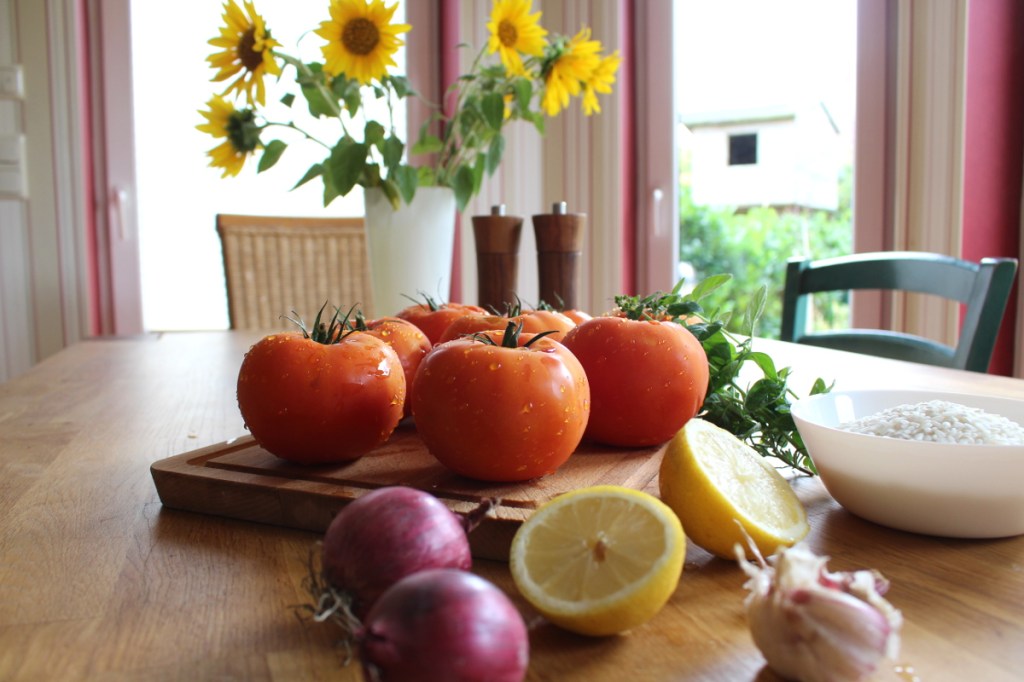 Unser vegetarisches Repertoire brauchte eine Erweiterung und so ein entspanntes Sommerwochenende war genau richtig etwas Neues auszuprobieren. Italienische Küche ist immer eine Bereicherung und warum nicht die dicken Fleischtomaten, die es derzeit überall gibt mit einem leckeren Risotto füllen. Gesagt, getan. Zutaten eingekauft und losgelegt.