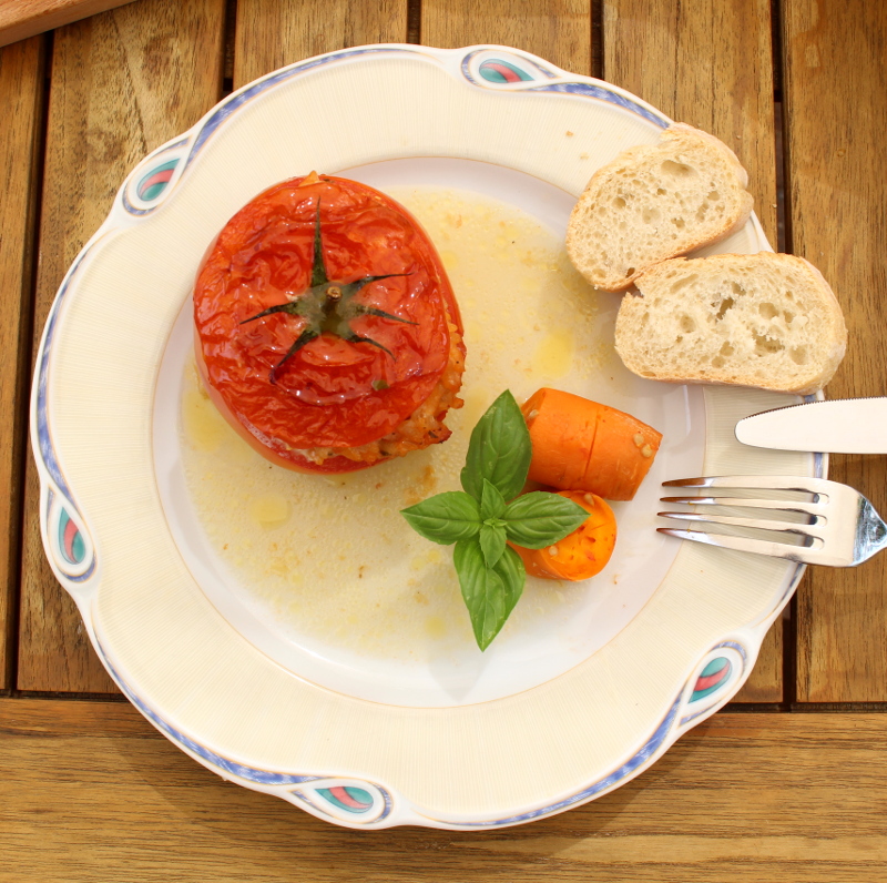 Gefüllte Tomate mit cremig-zitronigem Risotto