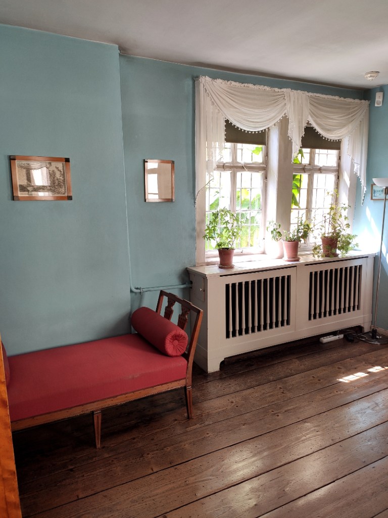 Ich mochte all die Räumlichkeiten mit knarrenden Dielen, antiken Möbeln, Gardinchen und Chaiselongues sehr. Man konnte sich praktisch vorstellen, wie Goethe durch diese Räume schritt und über seinen neuen Akt im Faust nachdachte. Begeistert war ich auch von der Gartenanlage.