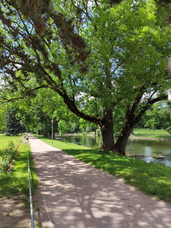 Wunderschöne Sichtachsen, herrliche Weiläufigkeit und angenehme 25 Grad ließen uns dort einen schönen Nachmittag verbringen, bevor wir auf ein Törtchen ins nächste Café einkehrten. Ich wäre gern noch in das Bauhausmuseum gegangen und schliff meine Männer da hin. Zu meiner Enttäuschung (und zum Segen für meine Begleitung) war das Museum zu. Na, dann eben beim nächsten Mal. Weimar kann man ruhig noch einmal besuchen. Zu viel Unentdecktes ist noch auf der Liste.