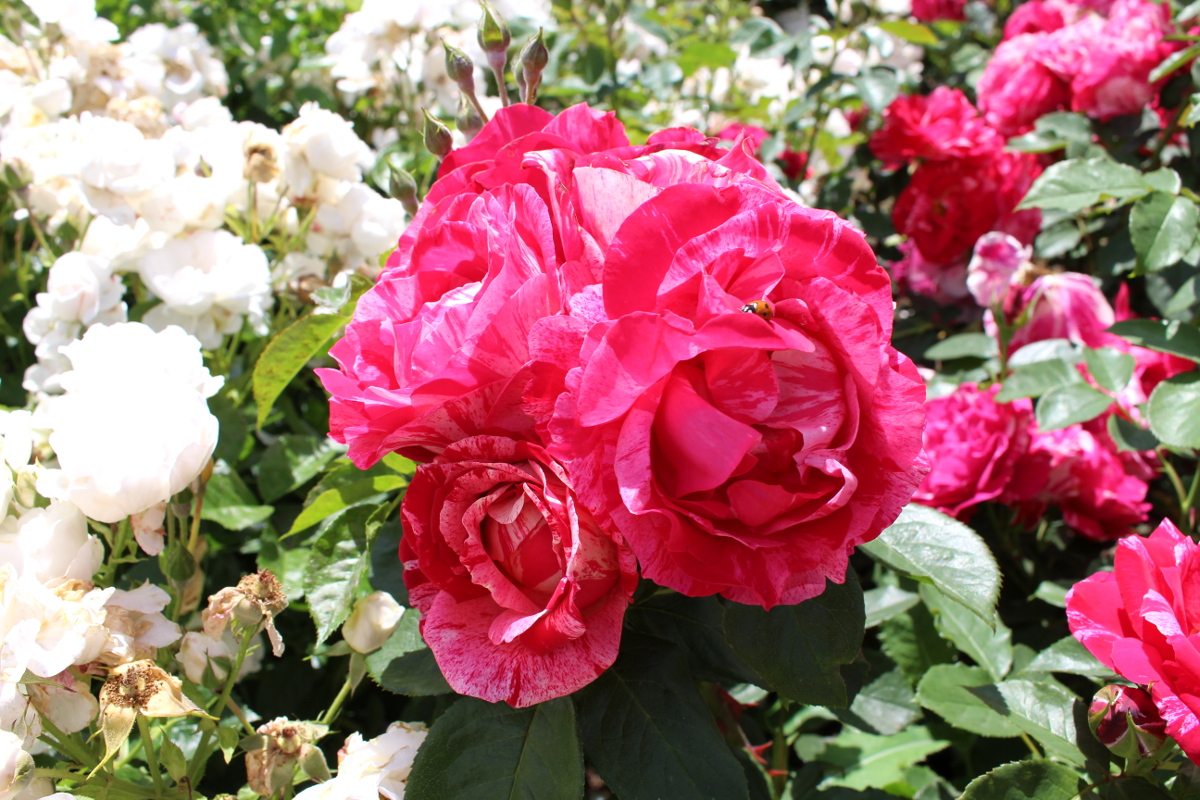 Diese weltgrößte Rosenausstellung umfasste alles, was es an Züchtungen gibt. Egal, ob Stamm-, Beet-, Duft-, Tee-, Kletter- oder englische Rosen. Sogar Seerosen waren dort zu finden. Es war ein Fest für die Sinne und all die schönen Farben und Formen animierten uns gleich nach der Rückkehr mehr Rosen in den heimischen Garten zu pflanzen. Es lohnt sich auch wirklich. Blühen diese Königinnen der Blumen ziemlich lange und bereichern jedes Beet.