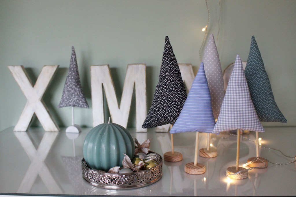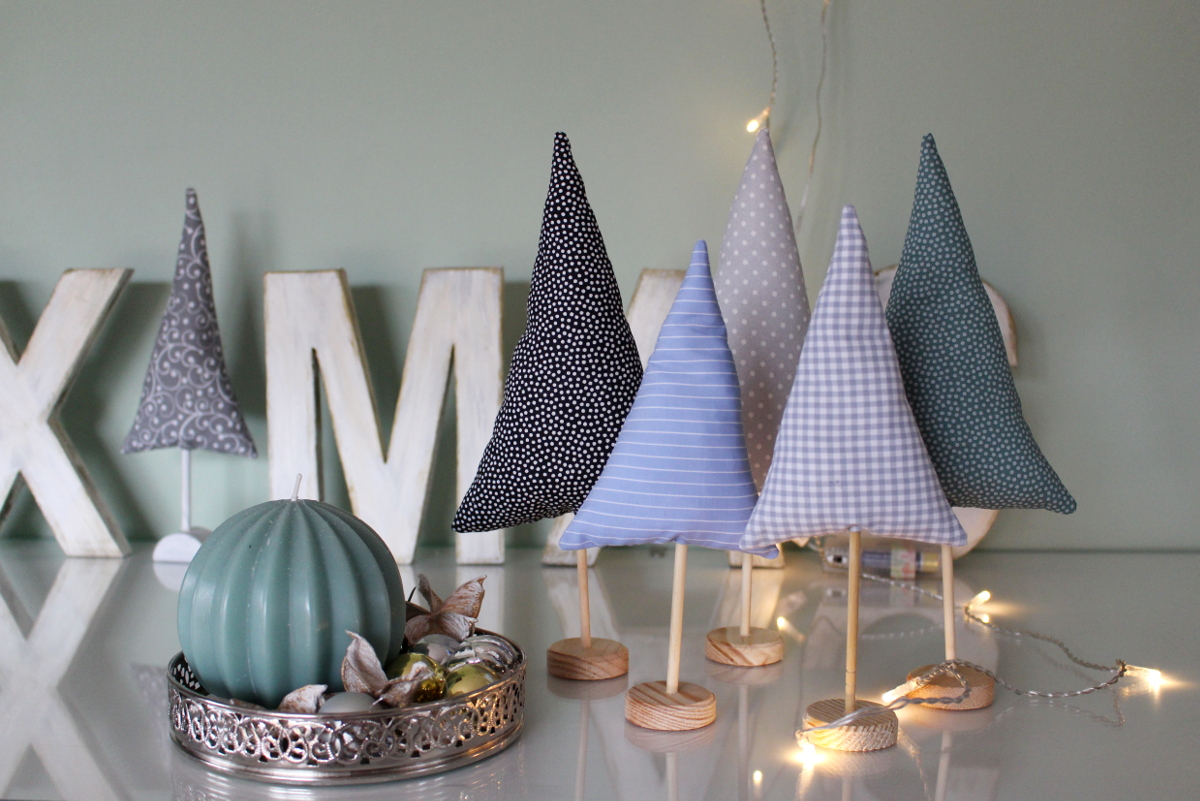 Also ich bin dieses Jahr ein bisschen mehr in Weihnachtslaune als sonst. Klar vermisse ich Weihnachtsmarkt, Christmaspartys und Glühwein mit Freunden. Auf der anderen Seite machen wir es uns zu Hause gemütlich, mampfen Stollen bei Kerzenschein und schauen schon Märchenfilme. Dafür war sonst kaum Zeit in der Adventszeit. Man muss eben das Beste aus diesem komischen Jahr machen. Dazu gehört auch in seine Wohnhöhle ein bisschen Gemütlichkeit zu zaubern und mit Dekogedöns und Lichterschein eine hyggelige Atmosphäre zu schaffen. Eigentlich nehme ich mir jedes Jahr vor nichts mehr zu Weihnachten zu kaufen oder auch zu basteln. Gerade letztes Jahr habe ich kistenweise aussortiert und mir geschworen, dass weniger mehr ist. Na ja, soweit haben die guten Vorsätze dann doch nicht gereicht. Ich muss aber zu meiner Verteidigung sagen, dass die neue Wandfarbe im „sanftmütigen Patinagrün“ (Farbbezeichnungsmarketer müsste man sein) doch eine leichte dekoseitige Umorientierung verlangte. Außerdem werden so ein paar kleine, süße Weihnachtsbäumchen aus Stoffresten ja wohl erlaubt sein. Die Stoffe haben so noch eine echte Chance der Verwertung bekommen und der Anblick der genähten Bäumchen erfreut mich immer, wenn ich an ihnen vorbei gehe. Also ein echter Zugewinn in meiner Dekoabteilung.