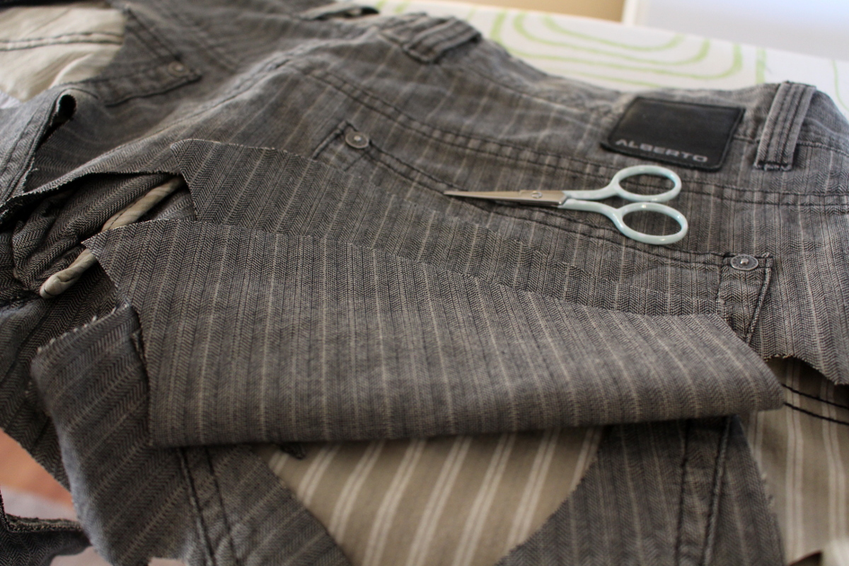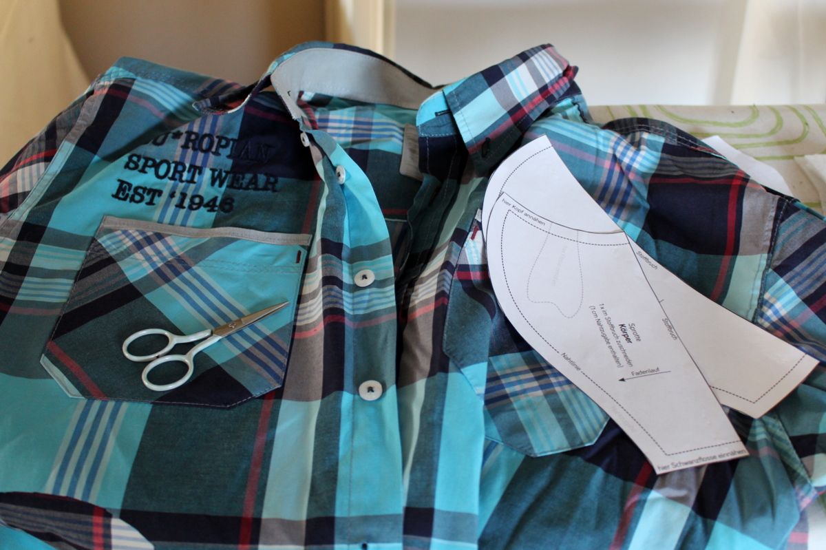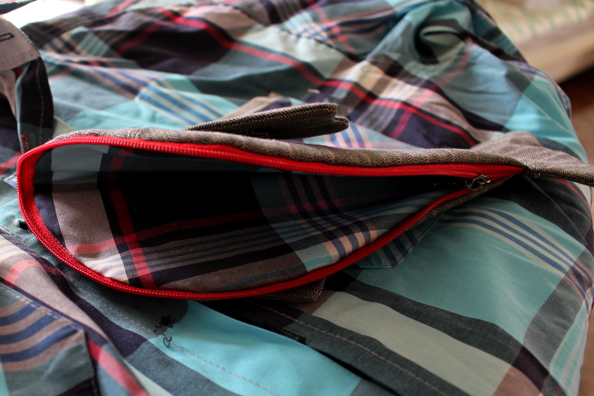 Ich hatte mich für das Sprottenmäppchen von LangeHand entschieden. Das fand ich als ausgesprochene Täschchenliebhaberin genau richtig für ein paar Stifte, Kosmetik oder sonstige Utensilien. Aus meinem Altkleidersack sprangen mir Hemd und Hose vom Liebsten entgegen und die Kombi stand fest.