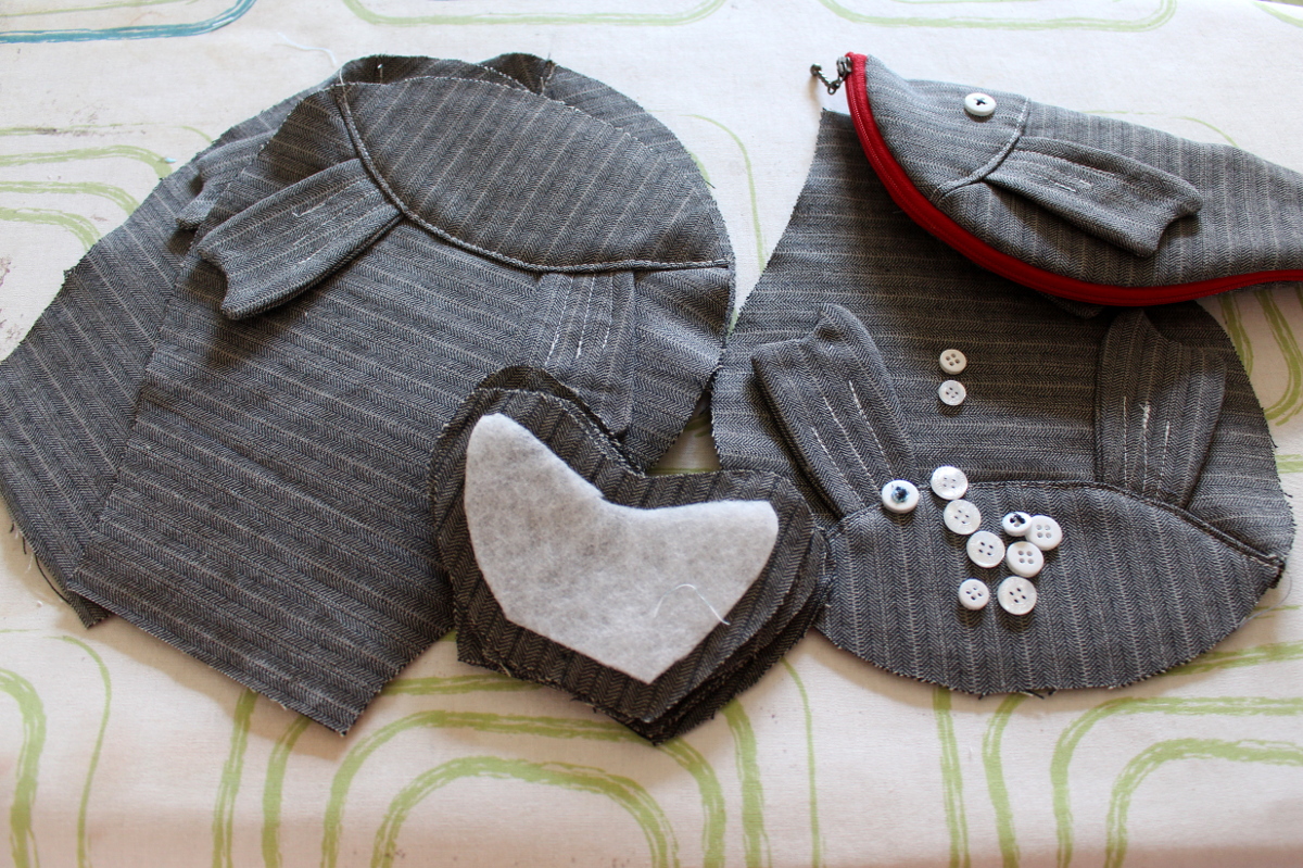 Für die Außenseite verwendete ich eine Hose im Fischgratmuster. Geradezu ein Muss für das fischige Mäppchen. Die Innenseite schnitt ich aus einem karierten Hemd zu und für die Augen des Sprottenmäppchen verwendete ich die Hemdknöpfe. Das ist doch echtes Upcycling. Lediglich ein paar Reißverschlüsse mussten geordert werden und die Miniserienproduktion konnte gestartet werden. Die Anleitung von LangeHand ist so perfekt geschrieben und bebildert, dass mir die Näherei leicht von der Hand ging.