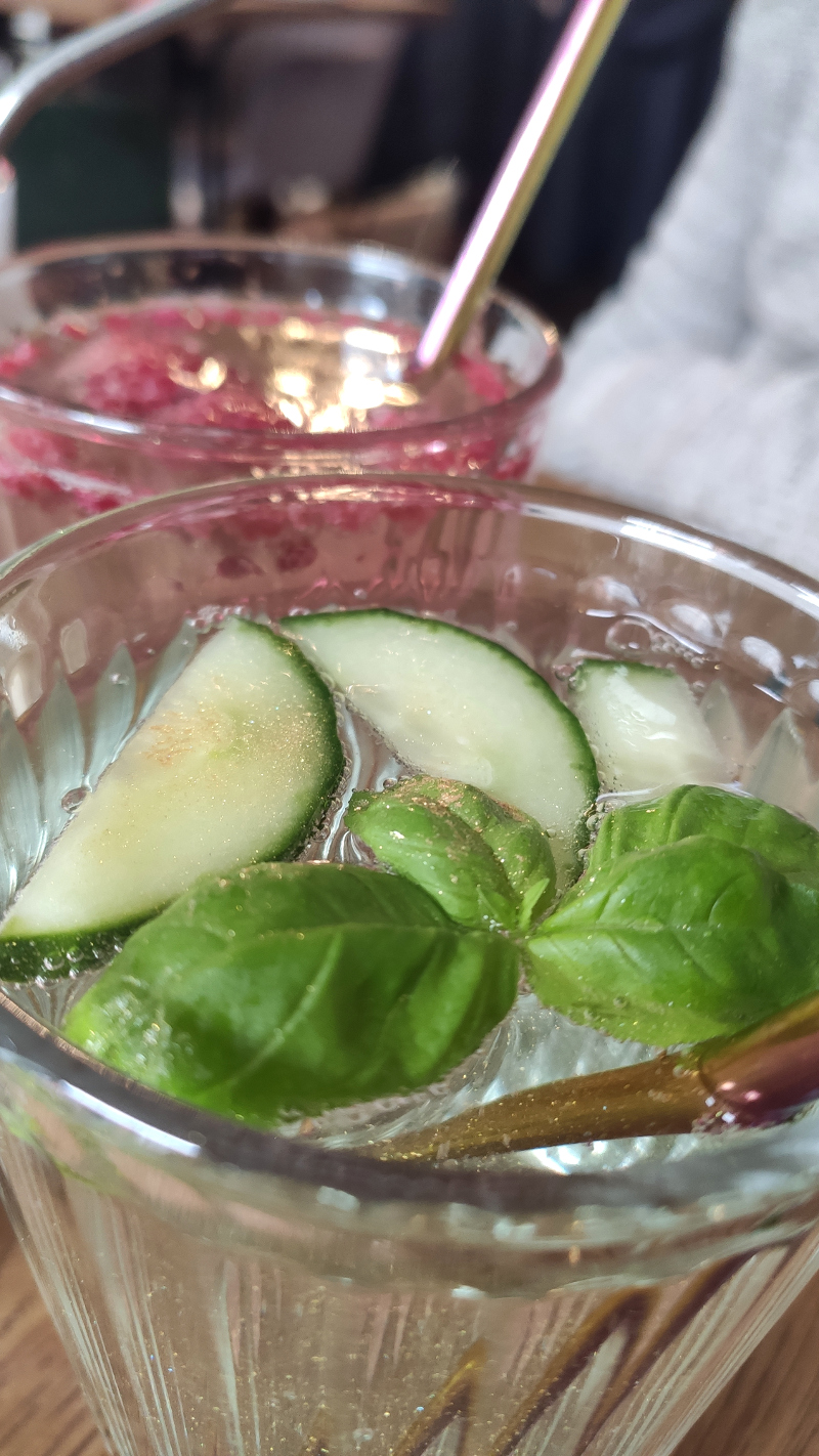 Ein Café für einen Zwischenstop versüßte uns die Stunden zwischen unseren Spaziergängen. Im Komplizencafé plauderten Schüler und Studenten über ihre Prüfungen, die nächsten Reisen und kicherten über die letzten Partyerlebnisse. Die Karte war klein und fein mit veganen Köstlichkeiten und leckeren Kuchen. Die Röschenlimonade war erfrischend, nicht so süß und auf dem Basilikum der „Komplizengurke“ schwamm Glitzer. Ich mag so junge Läden und die gut ausgestatteten Örtlichkeiten erinnerten mich eher an ein Bad als an ein Kneipenklo. Herrlich, wenn man Zeit hat, ab und zu einen Sip Limonade nimmt und das süße Nichtstun genießt.