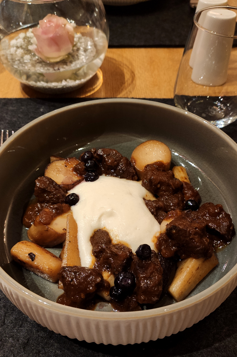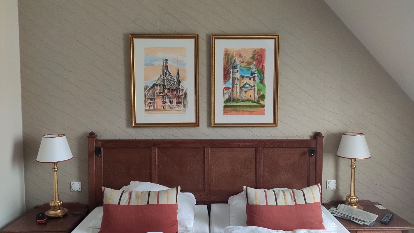 So eine Reise lebt natürlich auch von den kulinarischen Köstlichkeiten und die gab es reichlich in der Stadt am Harz. Beginnen wir mit unserem Hotel, dass eine ziemlich gute Küche hatte. Gleich am Ankunftsabend gab es zartes Wild aus heimischen Wäldern auf Sellerieschaum und feinsten Pastinaken. Echt lecker. Davor gab es noch Ziegenfrischkäse mit einem Dach aus karamelisierten Senfkörnern. Das mag, dass Küche einen immer wieder überraschen kann, auch mit einfachen Zutaten.