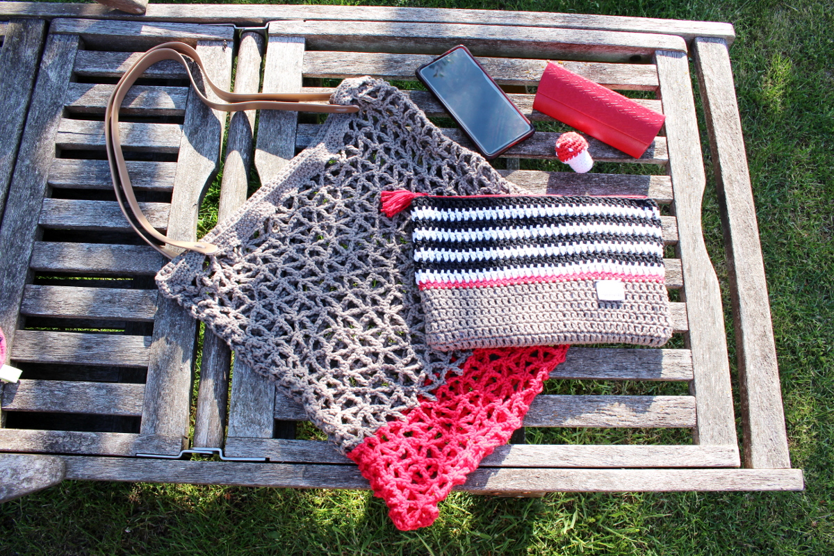 Mit meiner un(d)iversell einzusetzenden Taschenhülle / Täschchen für Häkeltasche / Clutch ziehe ich los in die Bloggerdienstagsrunde Dings von Dienstag und Creativsalat.