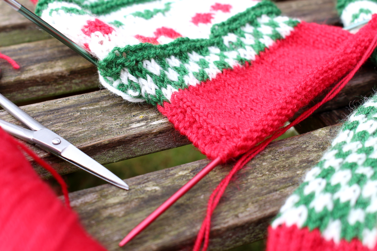 Sockenstricken macht Spaß, weil man relativ schnell ein Ergebnis hat. Auch das Stricken mit 2 Farben hatte etwas Meditatives. Es geht nicht so schnell, dafür freut man sich über das Muster, das entsteht. Auch das Zählen ist viel einfacher und die Socken werden garantiert gleich groß.