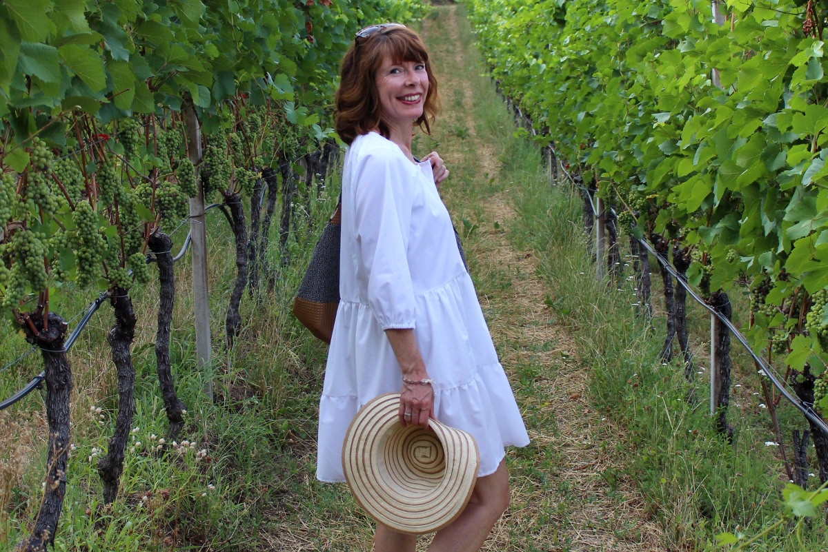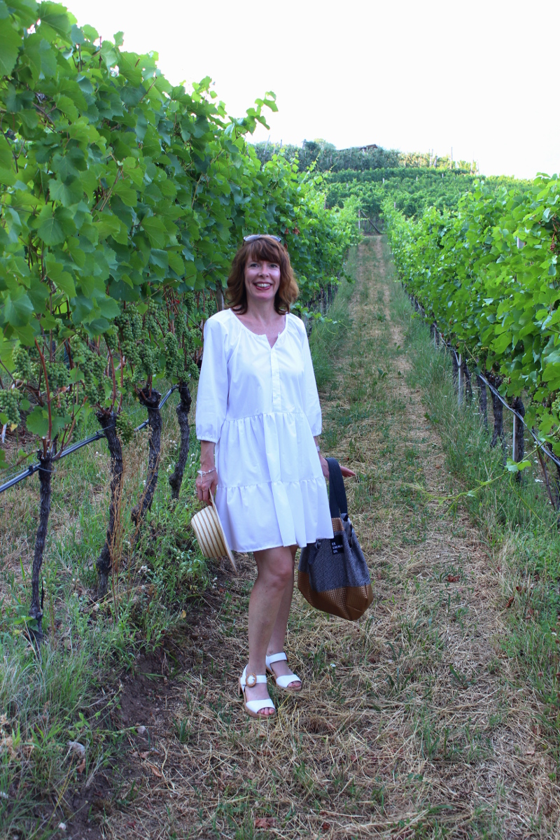 Da ich das Kleid auf den letzten Drücker vor dem Urlaub fertigbekommen habe, und eingepackt habe, stand einem Fotoshooting in den Weinbergen nichts mehr im Wege.