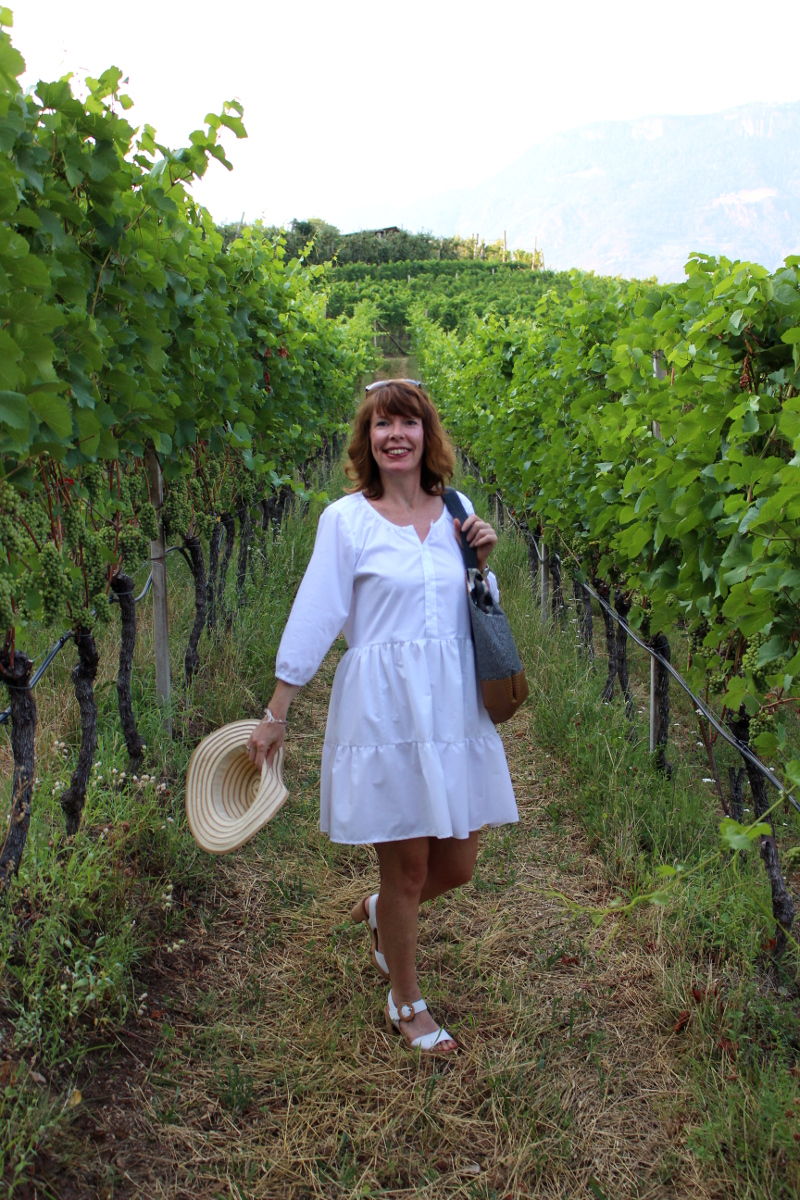 Zusammen mit meiner Tasche Großer Heinrich, Strohhut und weißen Sandaletten habe ich mich sehr wohl gefühlt. Das Kleid war ein perfekter Urlaubsbegleiter, da es schön luftig war bei den hochsommerlichen Temperaturen in Südtirol