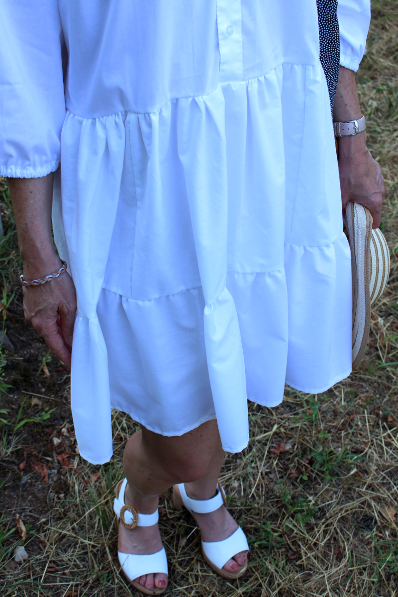 Schon lange hatte ich die Idee aus mehreren ausgesonderten Männerhemden ein Kleid zu schneidern. Ich wollte eine Stufenkleid im Bohostyle. Ein Stapel weißer Hemden kamen mir da gerade recht, ist doch weiß die Sommerfarbe schlechthin.