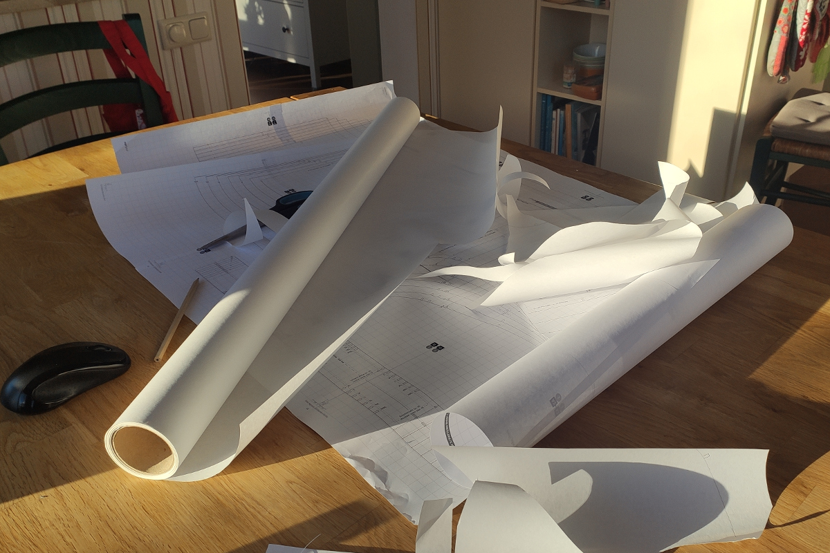 Ein Tag frei, da wird natürlich genäht oder das Nähen vorbereitet. Ich habe mich ein bisschen doof angestellt. Erst Größe XL auf Schnittmusterpapier übertragen und dann festgestellt, dass das für meine Männer doch viel zu groß ist und dann auf L verkleinert. Tja, nächstes Mal lieber vorher lesen, dass XL die Größe 54-58 darstellen soll.
