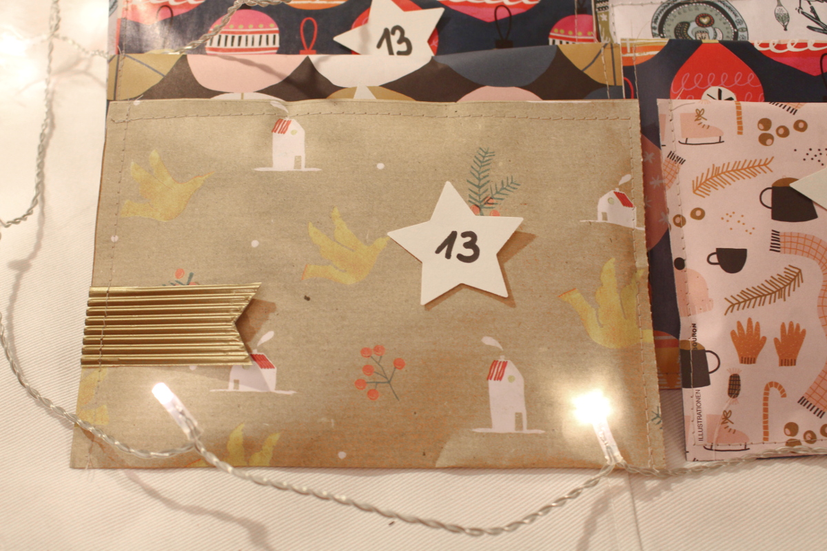 Für die Verpackung habe ich Geschenkpapier aus der Flow genommen und kleine Tüten genäht. Das finde ich immer schneller als Tüten kleben. Da fehlt mir dann doch die Geduld für. Ein ausgestanztes Sternchen mit der Nummer versehen und meine Päckchen konnten auf die Reise gehen.
