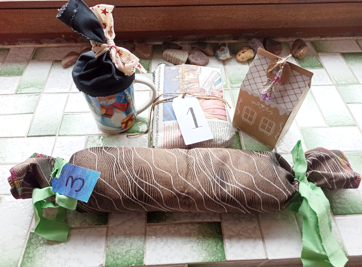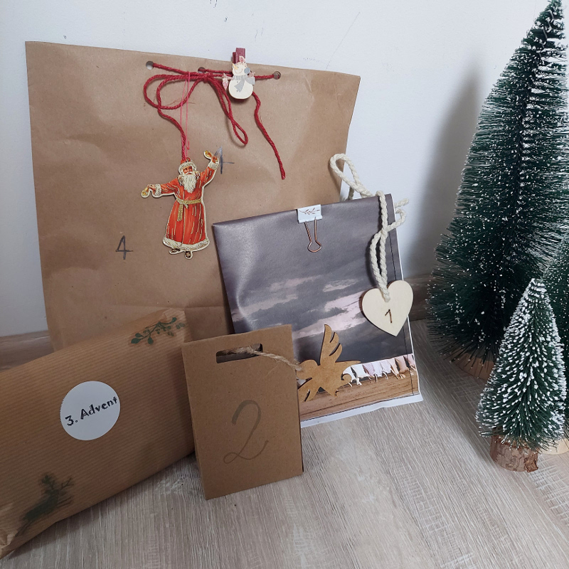 Hier die Bilder von den gepackten Päckchen. Der eingeweihte Leser weiß, worum es beim DNAS2023 geht. Wir packen nur 4 Päckchen für die Adventssonntage statt eines ganzen Adventskalenders und es geht darum, den Nachhaltigkeitsgedanken beim Erstellen der Geschenke zu beachten. Entweder ausgediente Materialien werden wiederverwendet oder es wird etwas gebastelt, was Ressourcen schont oder Wegwerfartikel ersetzt oder oder oder.