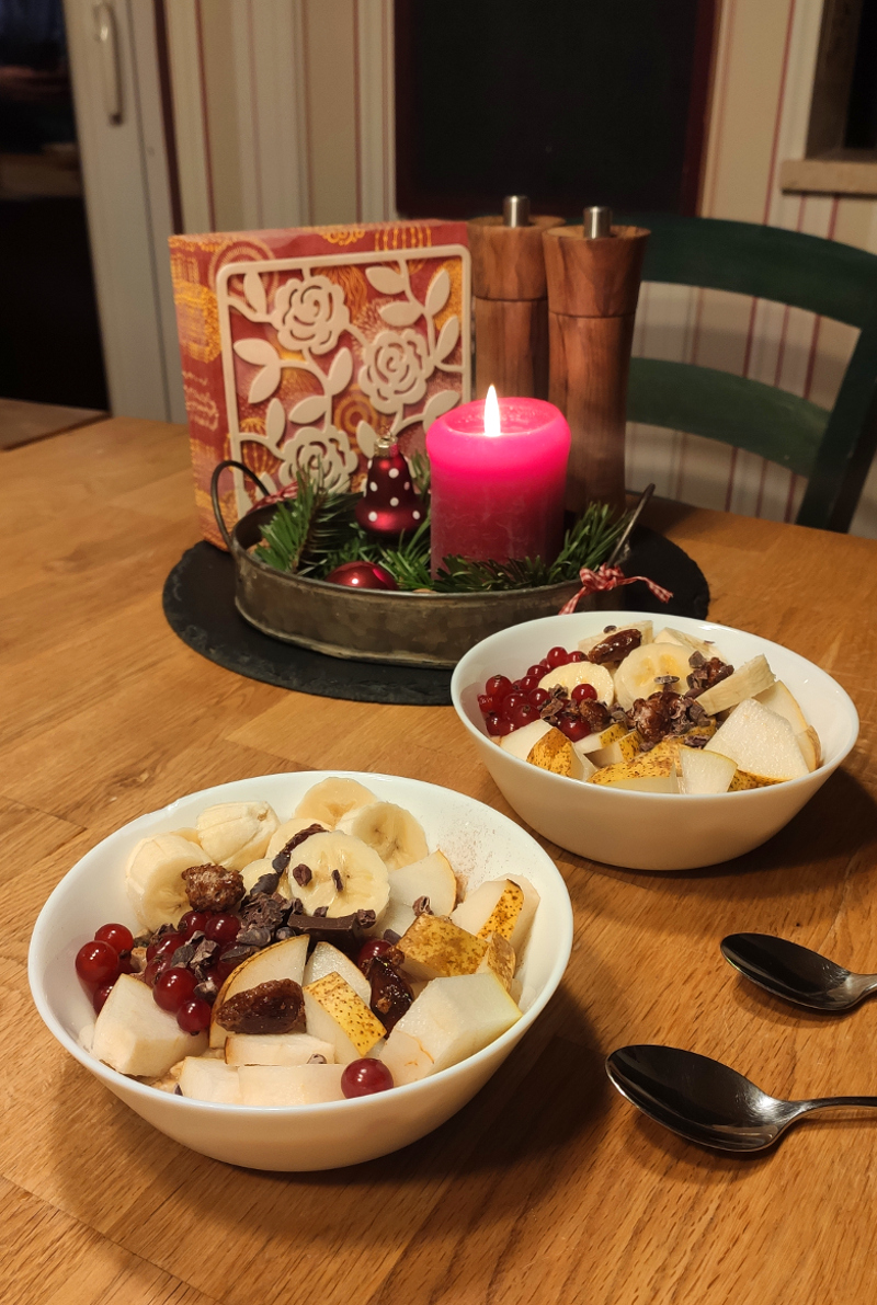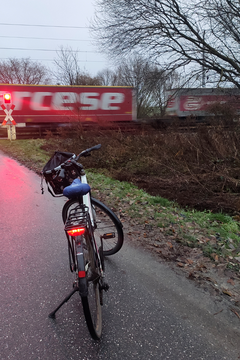 Heute ist wieder der 12. des Monats und nach guter, alter Tradition von Draußen nur Kännchen serviere ich euch meine 12 Bilder des Dezembers. Ein guter Tag beginnt mit einem guten Porridge mit Früchten, Kakaonibs und weil Dezember ist, mit ein paar gebrannten Mandeln. Lecker! Dann ab aufs Fahrrad. Bei drei Bahnübergängen auf der Strecke trifft es mich doch öfters und ich muss anhalten. Macht nichts!
