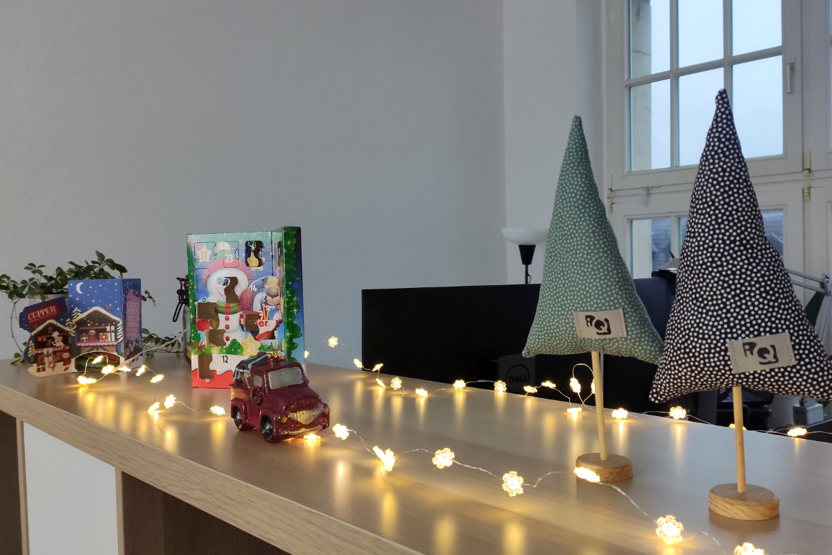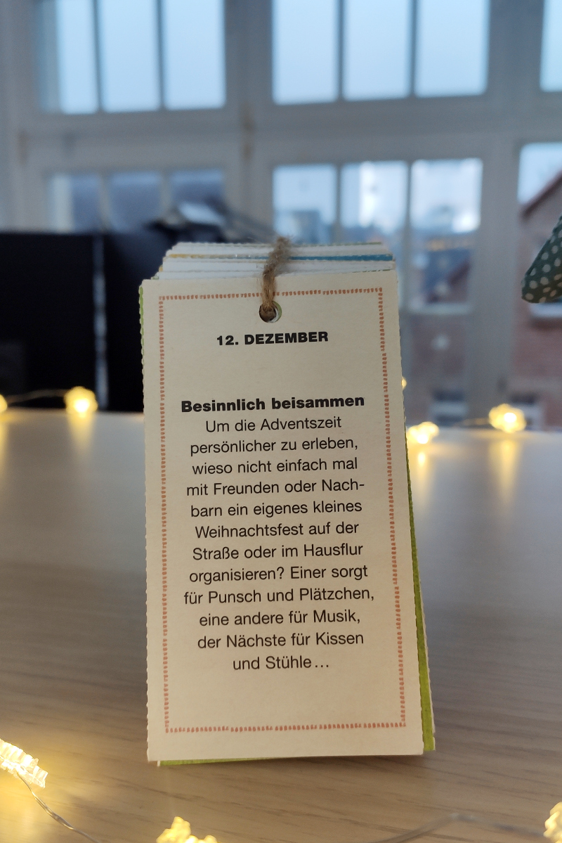 Im Büro angekommen, koche ich mir erst einmal eine Kanne Tee, öffne meinen Adventskalender und schlage meinen Flow-Kalender um. Wie du siehst, mag ich auch auf Arbeit ein bisschen Weihnachtsstimmung. Immerhin ist man dort den größten Teil des Tages und warum soll man nicht das Nützliche mit dem Angenehmen verbinden?
