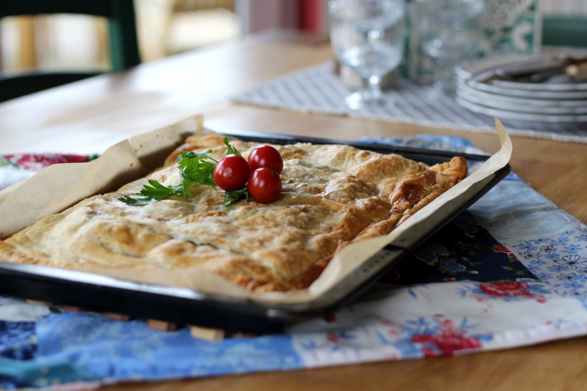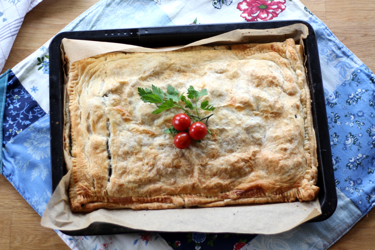 Falls ein ganzes Blech zu viel ist, kann man das Rezept auch gut halbieren und es in einer kleineren Form schichten. Ich mag bei diesen Varianten, dass man ordentlich Füllung hat und nicht so viel „staubigen“ Blätterteig. So ist es schön saftig und durch den kräftigen Spinat auch würzig. Mag ich!