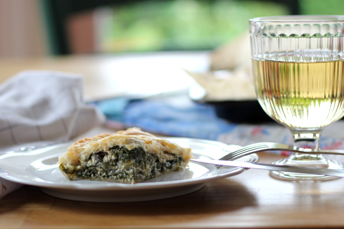 Mit einem kühlen Weißwein lässt sich die Spanakopita sehr gut im Sommer draußen genießen und ist ein köstlicher Imbiss, mit ein paar weißen Bohnen in Tomatensoße und Oliven auch eine vollwertige Mahlzeit. Sie lässt sich auch gut vorbereiten, wenn abends Gäste kommen oder als Meal-Prep für den nächsten Tag.