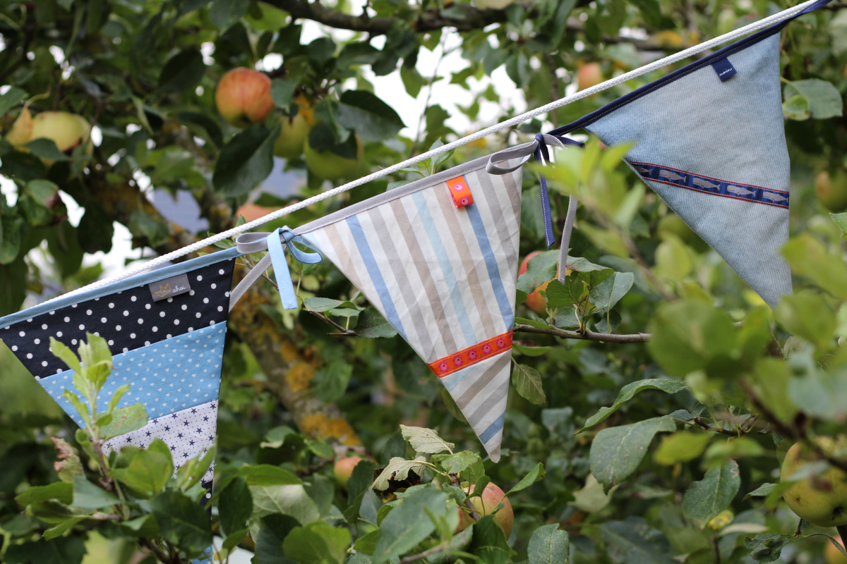 Ich habe wieder richtig Lust bekommen, Wimpel zu nähen und habe sie gleich auch noch einmal in den Apfelbaum gehängt. Das sah sehr schön sommerlich aus und ich denke, ich werde meine Restekiste, die natürlich niemals wirklich leer wird, noch einmal durchwühlen und ein paar Wimpel für den Garten nähen. Wäre ja nicht das erste Mal. Hier und hier und auch hier habe ich dir auch schon Wimpelketten gezeigt.