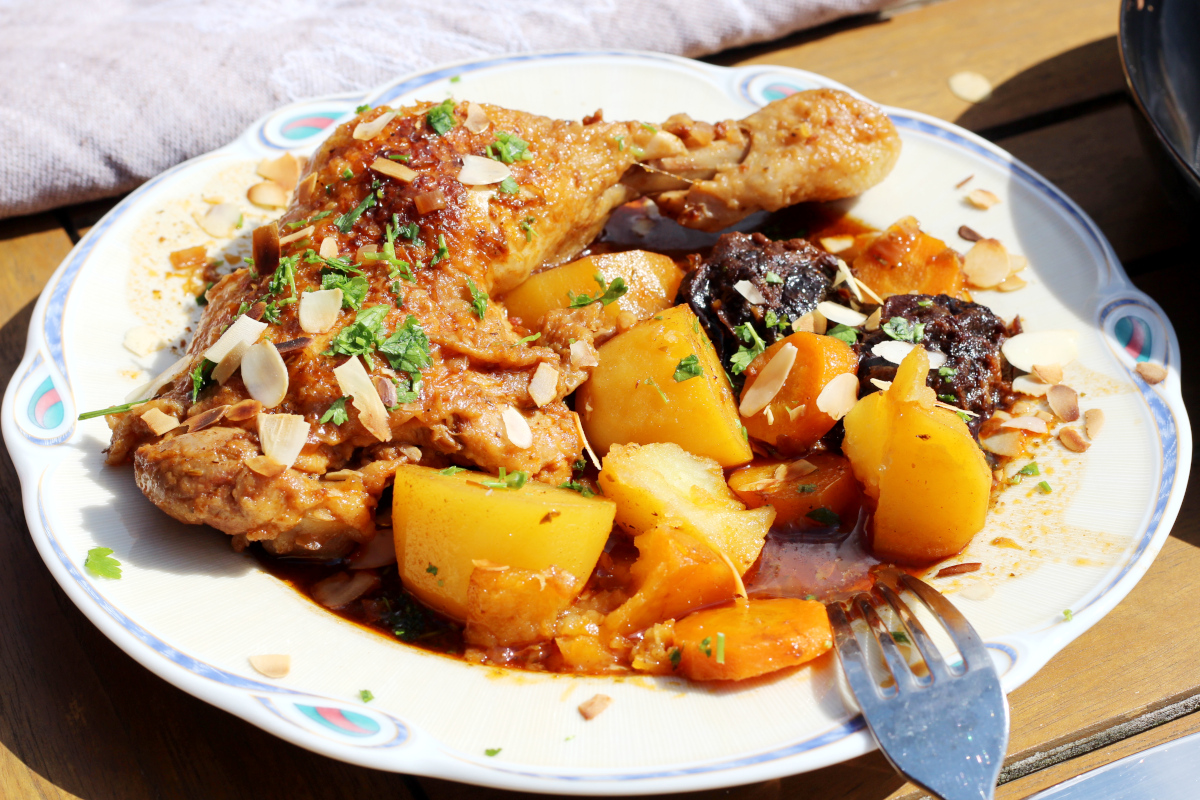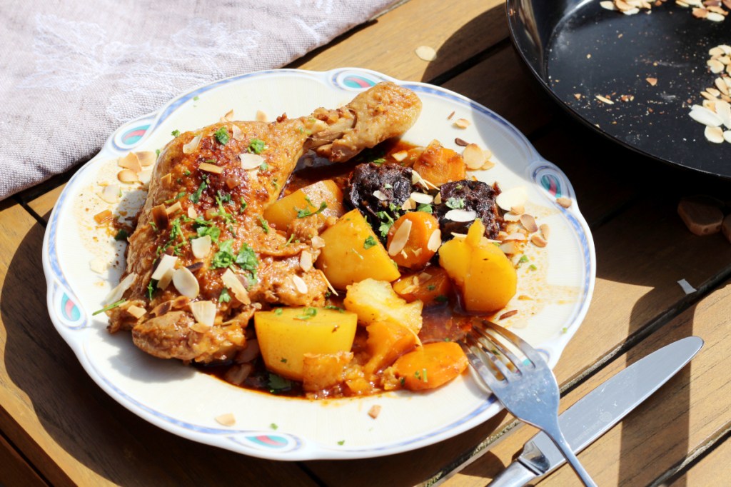 Ich mag diese pikante Mischung aus Paprikaschärfe und süß-würzigen Backpflaumen. Ein Gericht, das im Sommer auf der Terrasse genauso mundet wie im Herbst, wo es schon etwas frisch draußen ist und man Lust auf ein selbstgekochten, dampfenden Topf mit gesundem und leckeren Essen hat.