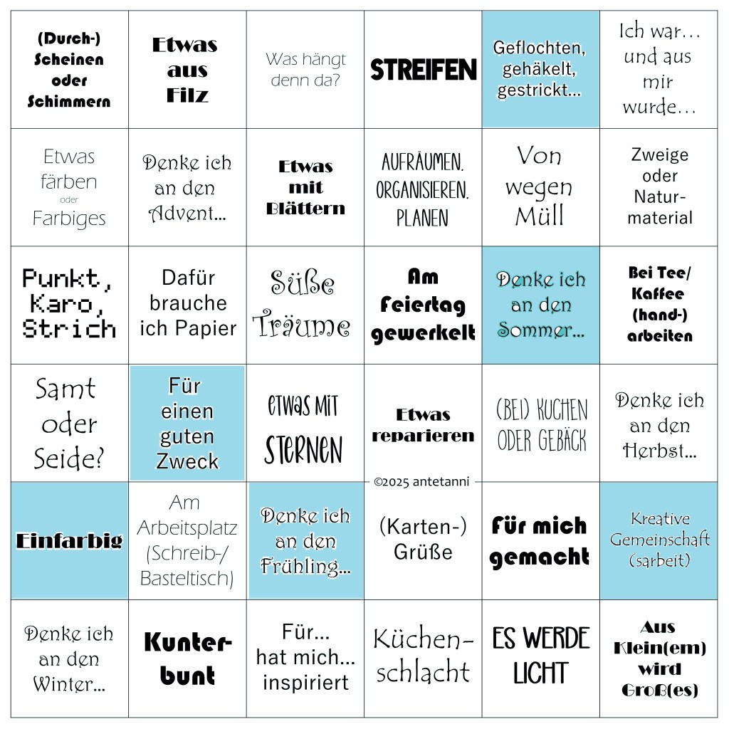 Damit bin ich bei Antetannis Jahresbingo mit dem Feld „Denk ich an Fühling…“, bei Lieblingsstücke von Stephanie, bei der Taschenlinkparty von Marita und beim Creativsalat von Augensterns Welt.