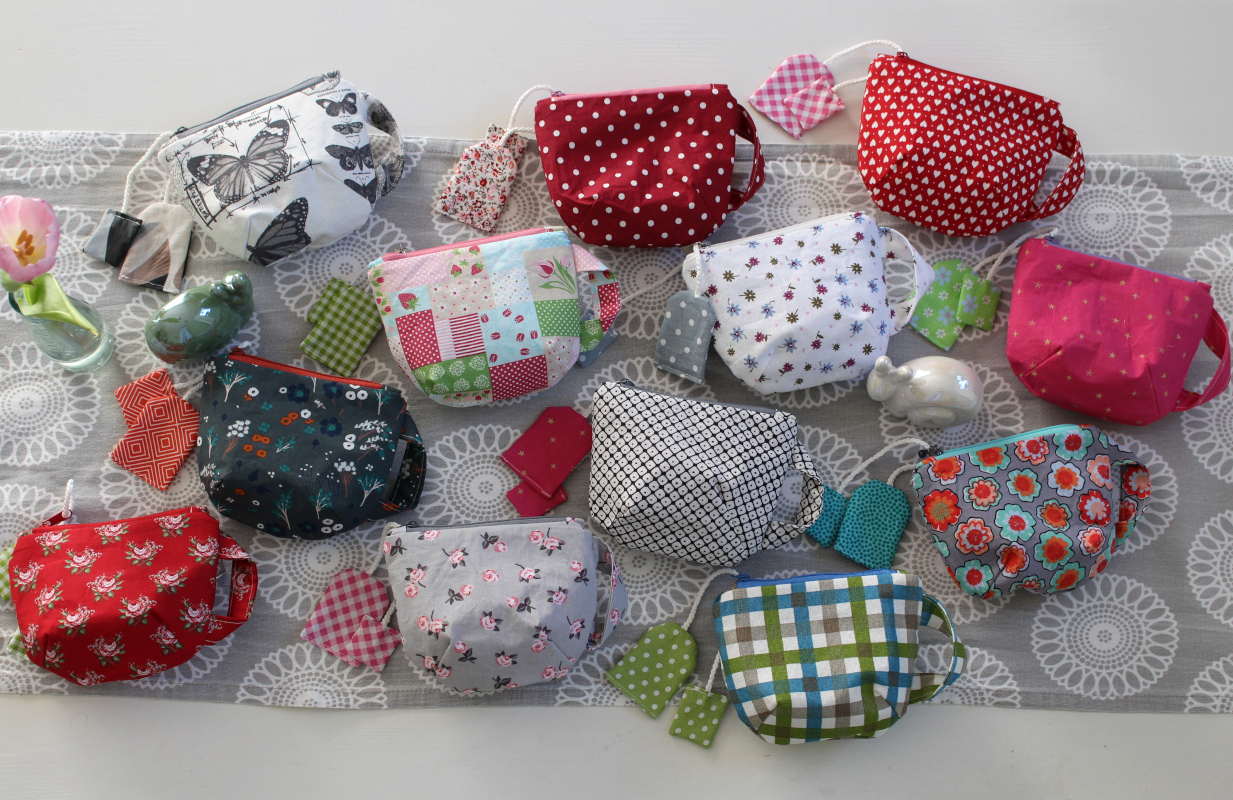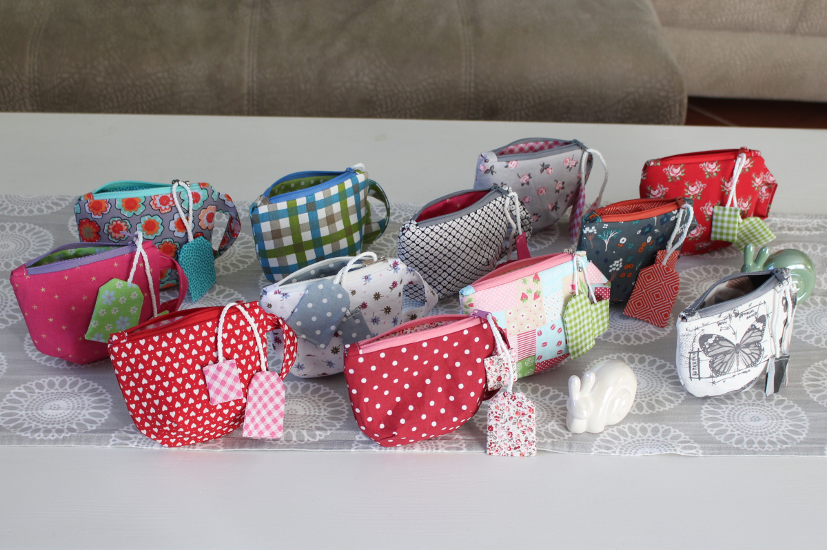 Für die Woche hatte ich einen genauen Plan: jeden Tag einen Arbeitsschritt. Fließbandarbeit funktioniert für mich am besten – aber nur, wenn ich vorher ein Probeexemplar nähe. Denn nichts ist frustrierender, als erst bei Arbeitsschritt fünf zu merken, dass alle Täschchen falsch sind. Die Anleitung war aber so präzise, dass alles wie am Schnürchen lief. Selbst die kleinen Teebeutel samt Label, die beim Nähen ein bisschen friemelig waren, haben sich am Ende gut gefügt. Am Freitagvormittag war alles fertig, pünktlich zur Abreise.
