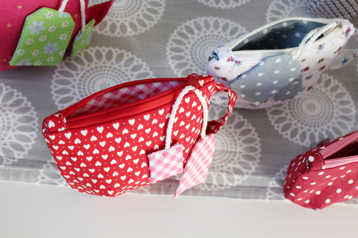 Und weil ich mich ja ungern mit leeren Händen auf den Weg mache, habe ich die Nähmaschine noch einmal heißlaufen lassen. Stoffreste habe ich schließlich mehr als genug – warum also nicht kreativ werden? Mit frühlingshaften Pastelltönen und ein bisschen Liebe zum Detail sind kleine Teetassentäschchen nach dem Schnitt von SewSimple entstanden. Perfekt für den Krimskrams, den wir alle in unseren Taschen herumtragen – Teebeutel, Lippenpflege, Kopfhörer oder diesen eine Bonbon, den man immer dabei hat, aber nie isst.